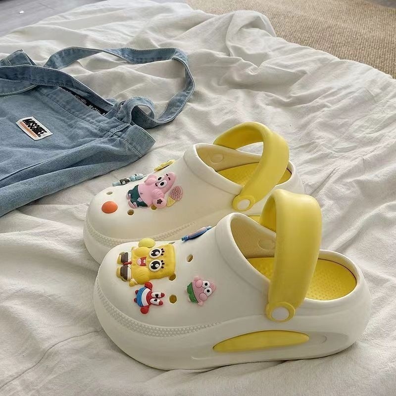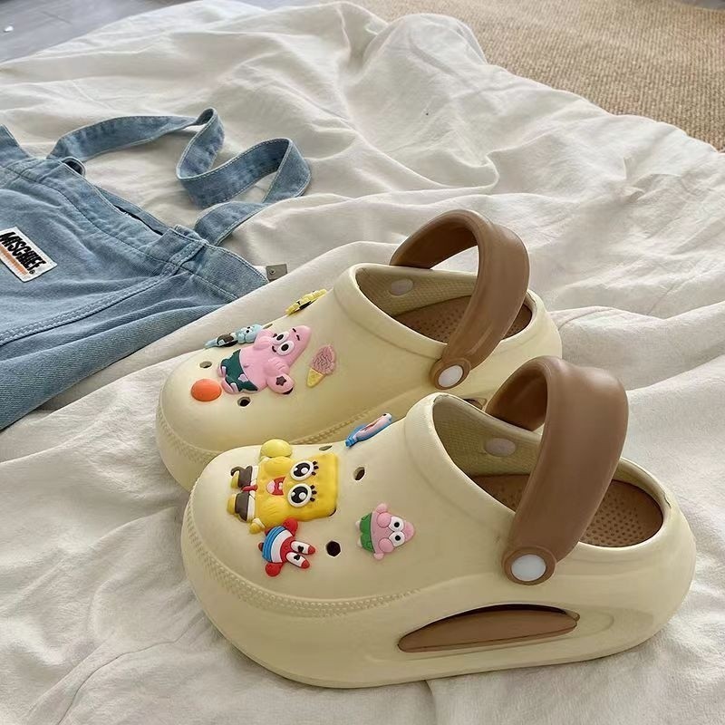 【จัดส่งจากกรุงเทพฯ】Icy.Sport รองเท้าหัวโต รองเท้าแตะสวม ส้นหนา พื้นนุ่ม สีพาสเทล แถมรองเท้าเสริมส้นX124