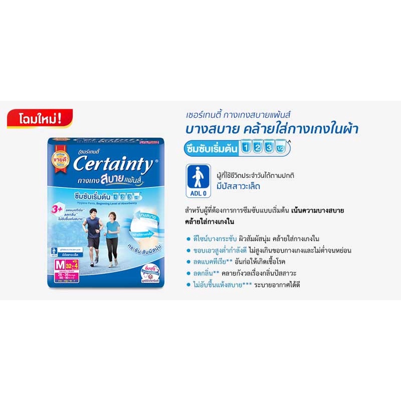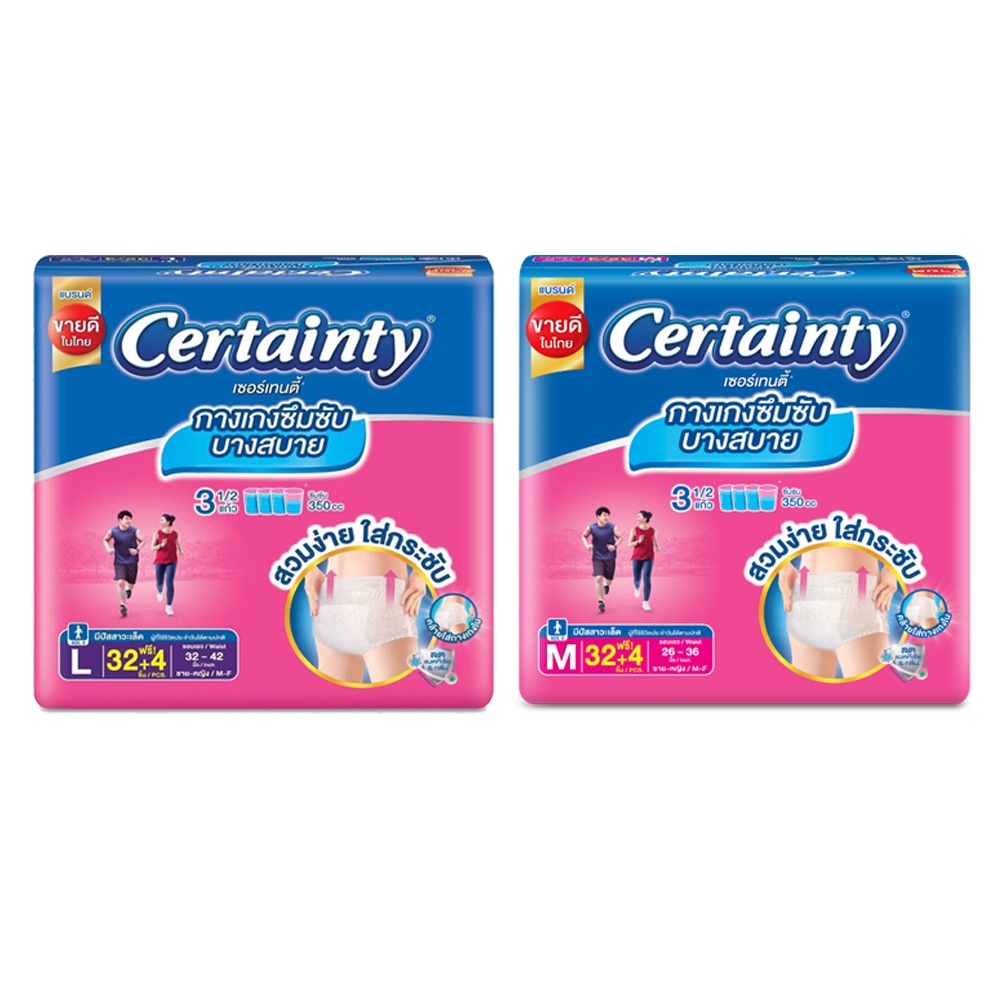 ผ้าอ้อมผู้ใหญ่ เซอร์เทนตี้ กางเกงอนามัยบางสบายไซส์ M,L
