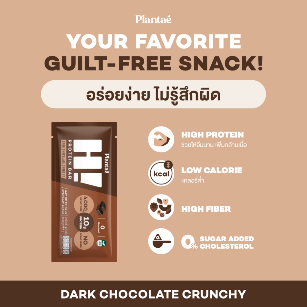 Plantae Hi Protein Bar รส Dark Chocolate Crunchy โปรตีนจากพืช โปรตีนบาร์ ขนมคลีน ไม่เติมน้ำตาล โปรตีนพืช plant based