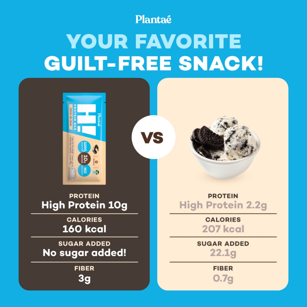 Plantae Hi Protein Bar : รส Cookies and Cream : โปรตีนพืช โปรตีนบาร์ ขนมคลีน ไม่เติมน้ำตาล plant based แพลนเต้