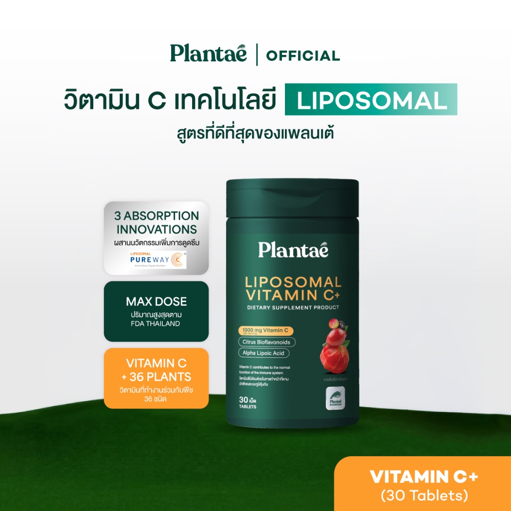 Plantae Essential Vitamins : Liposomal Vitamin C+ กระปุก 30 เม็ด วิตามินซี vitc vit c