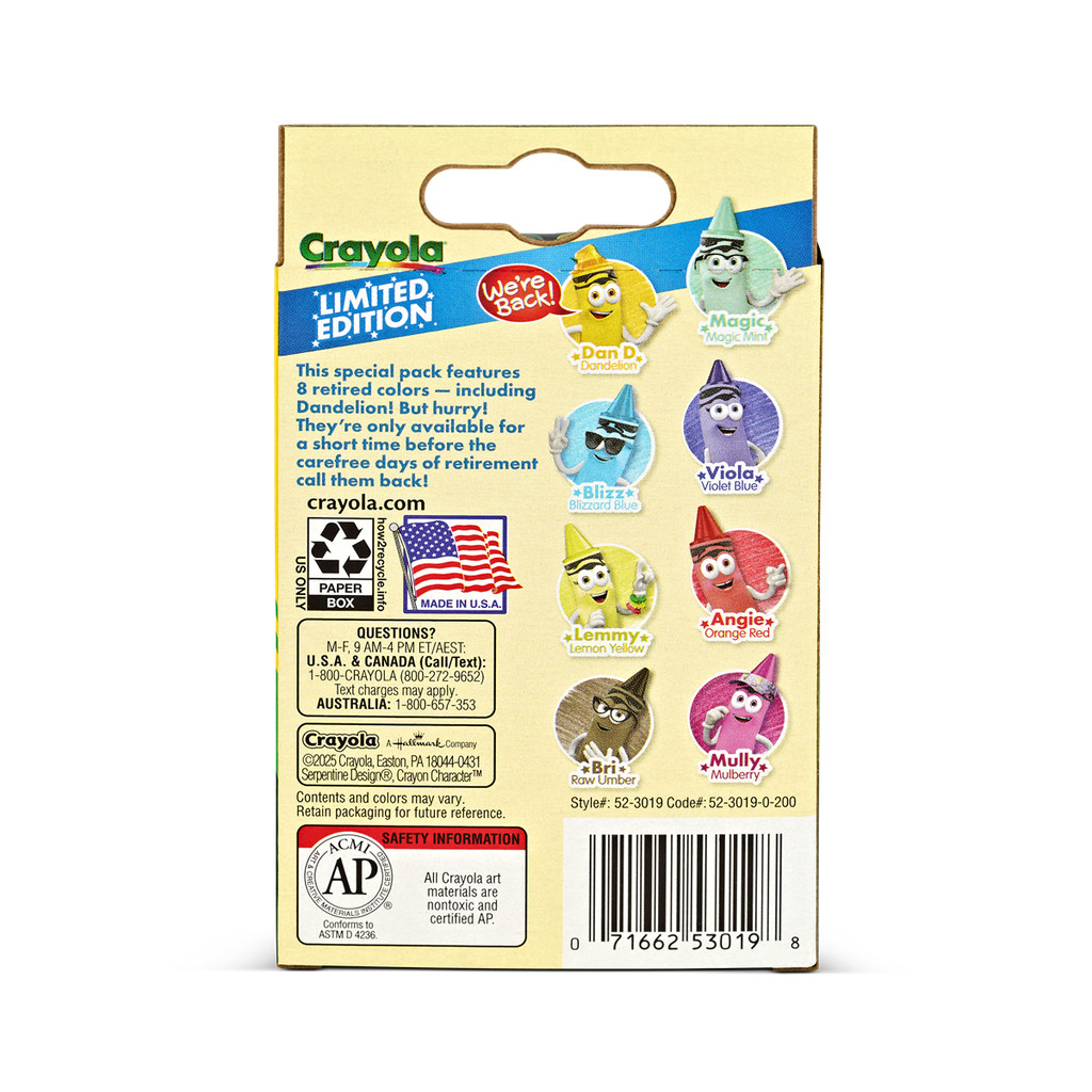 Crayola 8Ct. Limited Edition Retired Crayons เครโยล่า สีเทียน ลิมิเต็ดเอดิชั่น ล้าง ออกได้ 8สี 52-3019