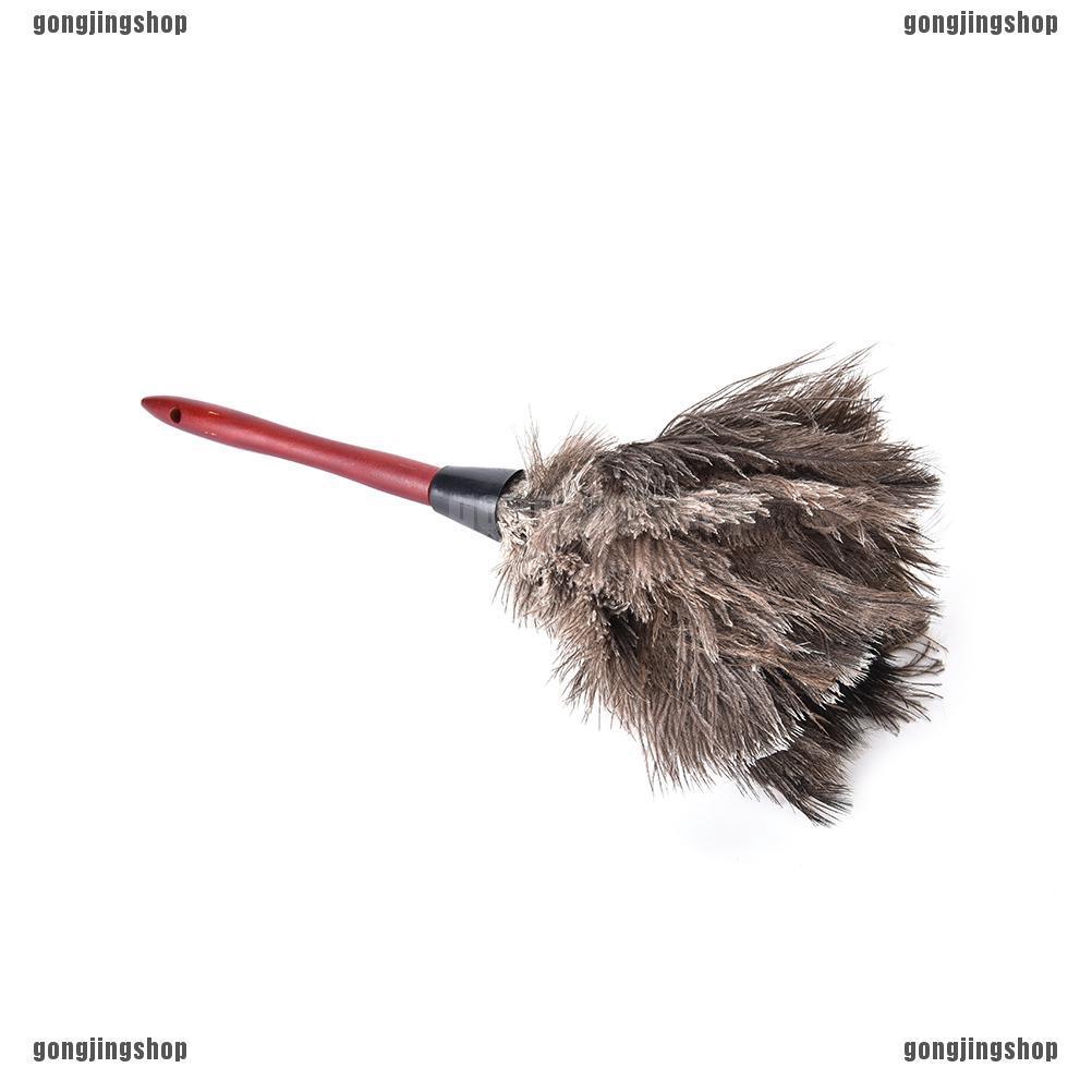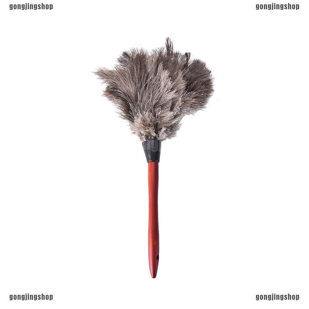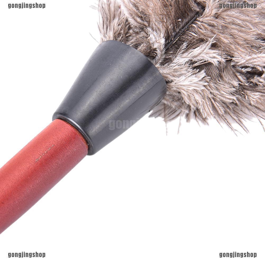 แปรงปัดฝุ่นนกกระจอกเทศ 55 ซม. ด้ามไม้ป้องกันไฟฟ้าสถิตย์บ้านสีเทาธรรมชาติ
