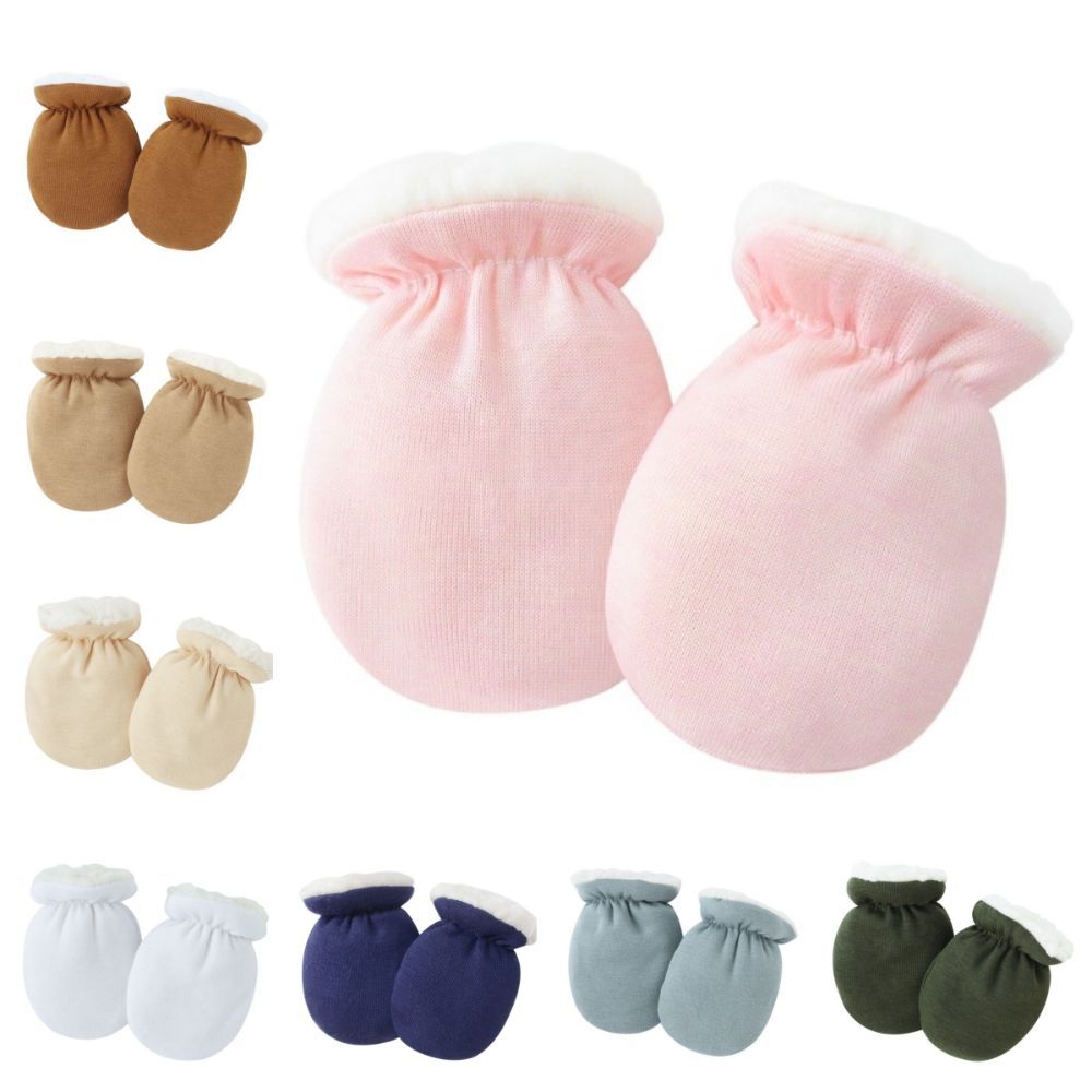 ถุงมือทารก HUISHU กันข่วน หนานุ่มเหมือนขนแกะ สีทึบสำหรับทารก 0-1 ปี ใช้ได้ในฤดูใบไม้ร่วงและฤดูหนาว
