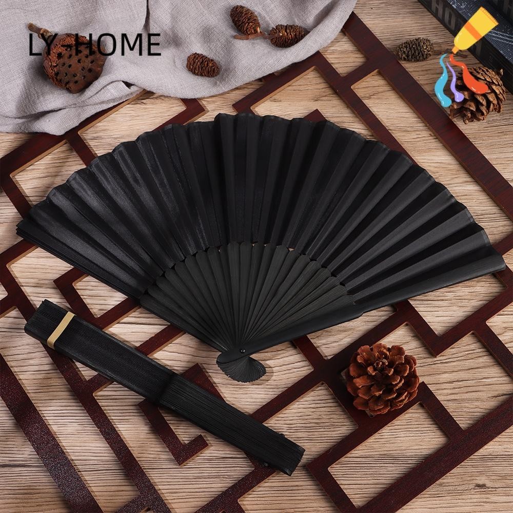 Ly พัดไม้ไผ่สไตล์จีนพับได้สีดํา 8.27นิ้ว (21 ซม.) สําหรับตกแต่งบ้าน