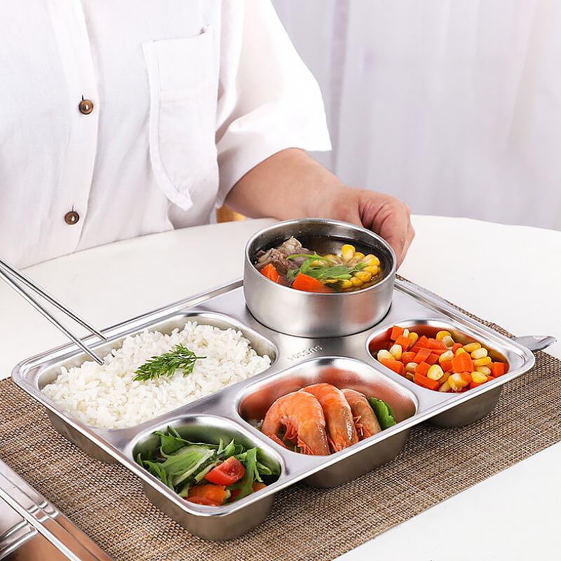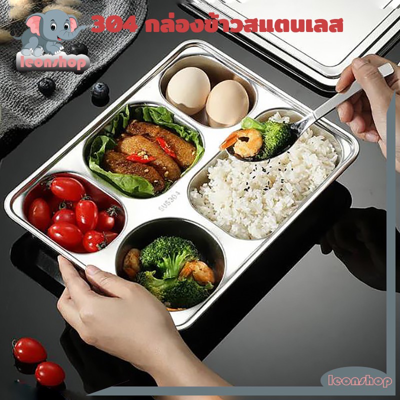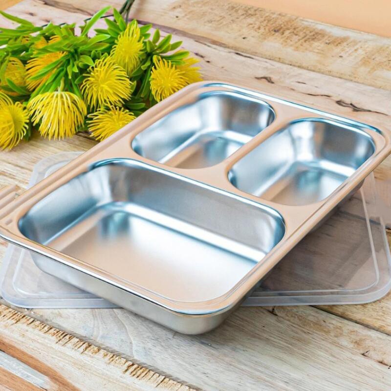 ถาดหลุมสแตนเลส 304 กล่องข้าวสแตนเลส มีฝาปิด กล่องข้าว ถาดหลุม 3 หลุม 4 หลุม และ 5 หลุม(ขนาดใหญ่) 28x22.5x4.5cm