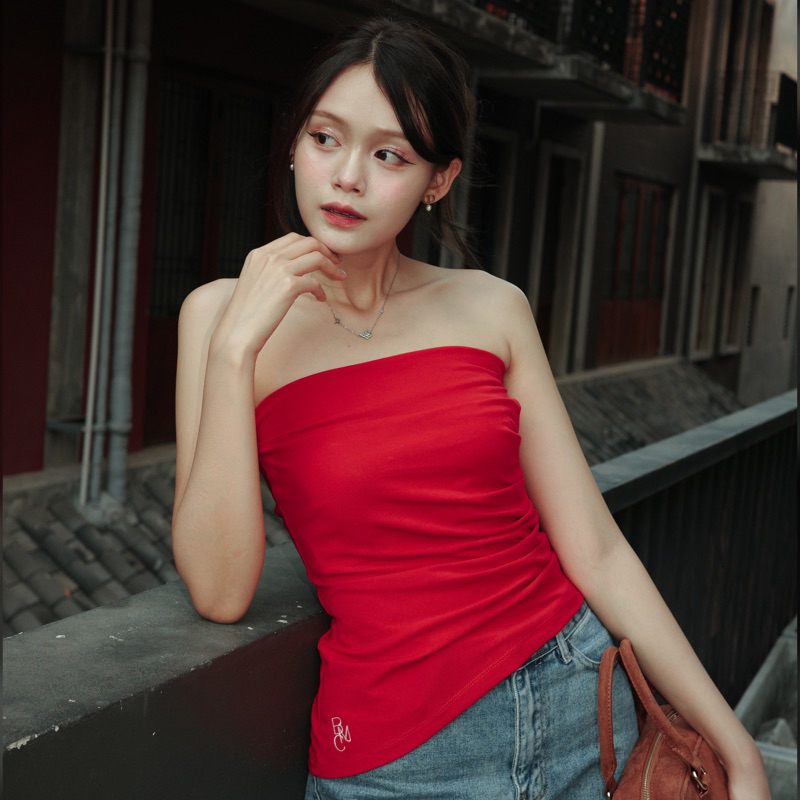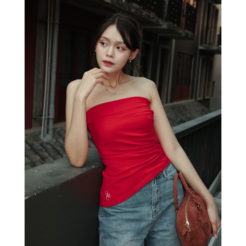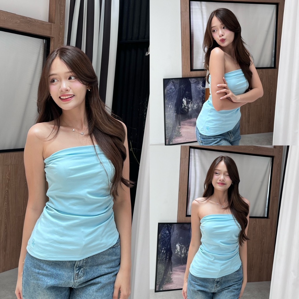 (ไม่ผลิตเพิ่ม) BEMYCHIC เสื้อเกาะอกเบี่ยงข้างผ้าคอตตอนยูนิโคล่ รุ่น RORA TOP