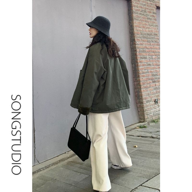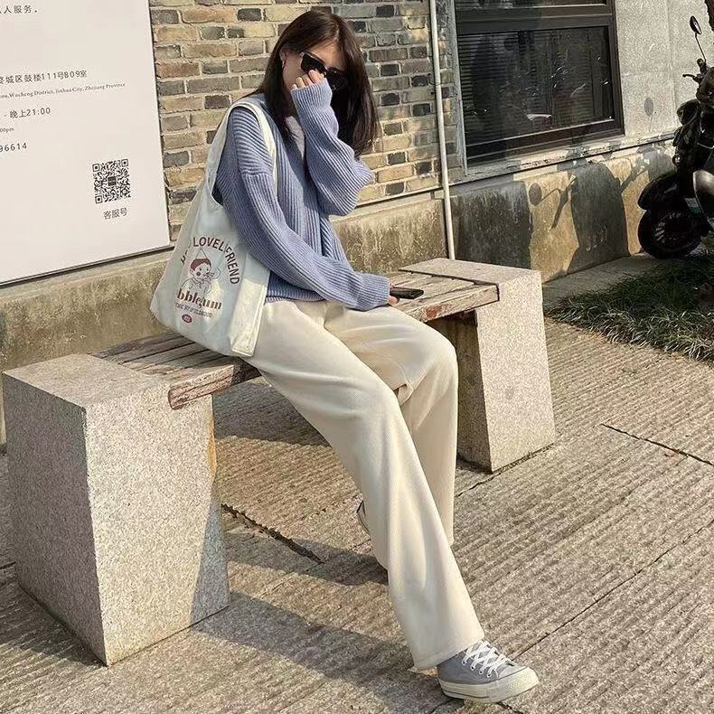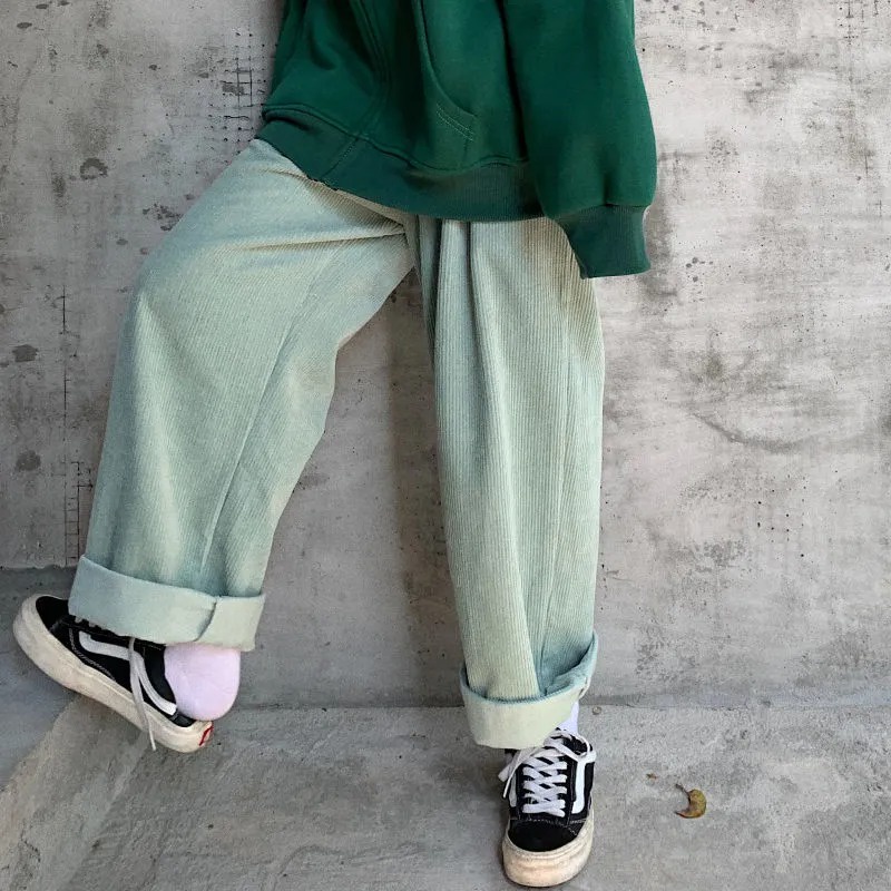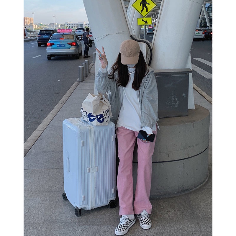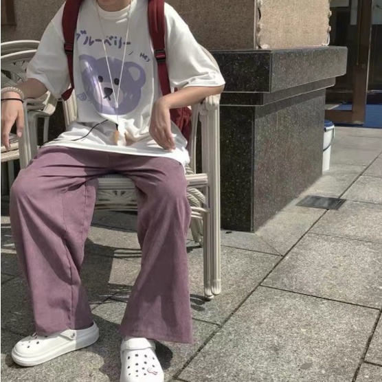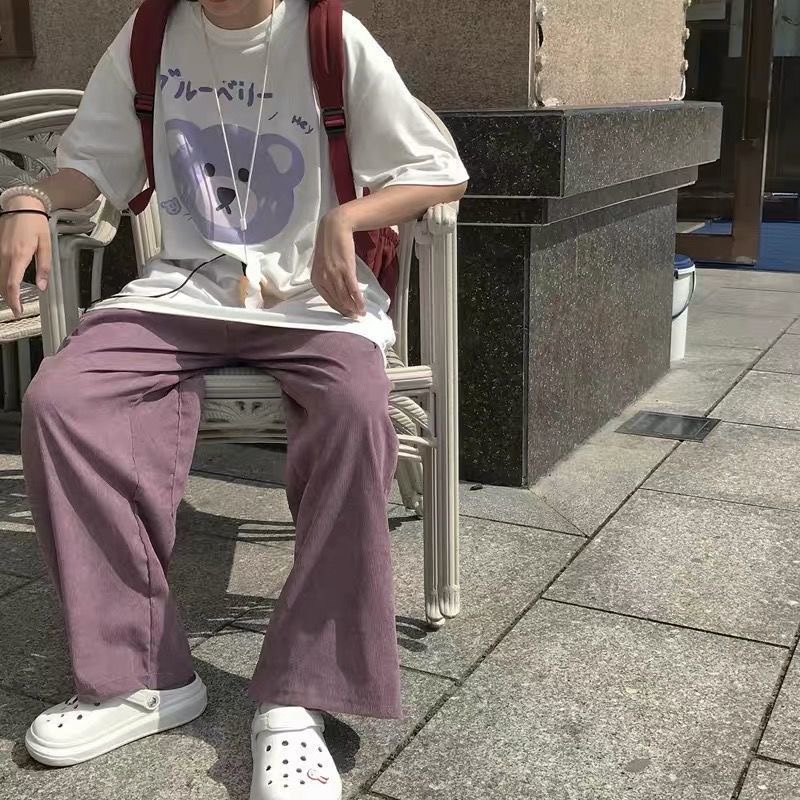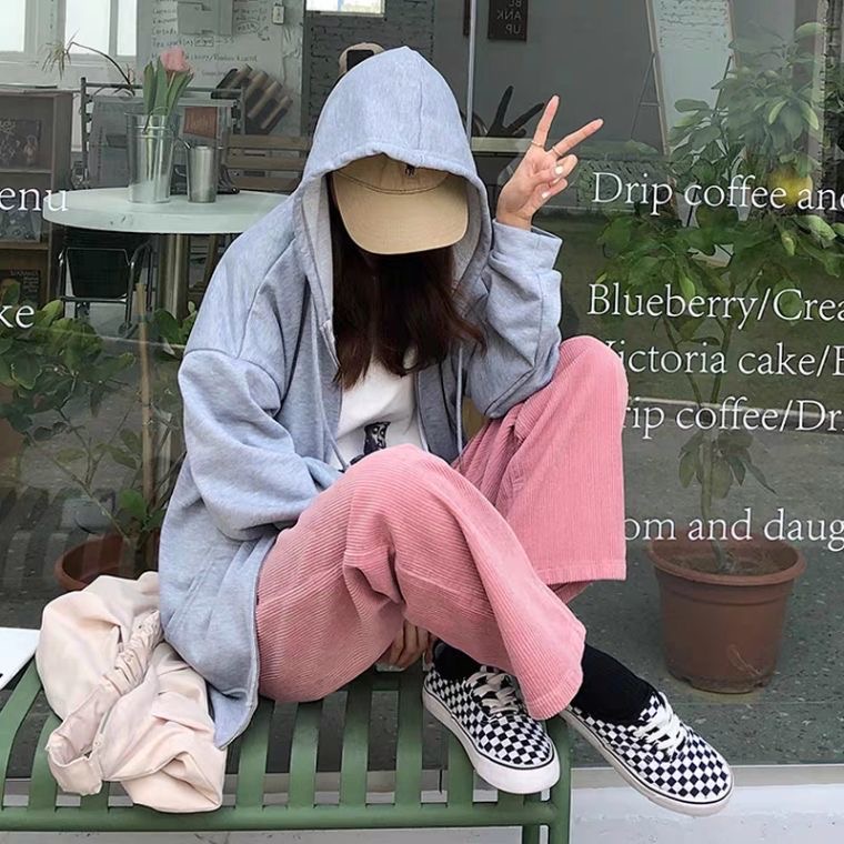 กางเกงผ้าลูกฟูกผู้หญิง กางเกงสีชมพู กางเกงขากว้าง หลวมและสบาย