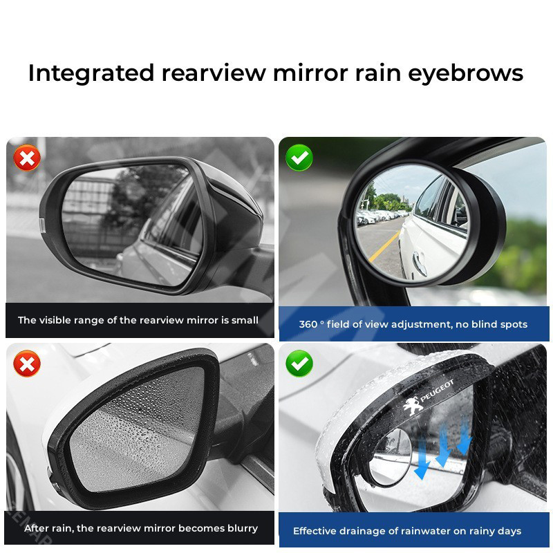 2ชิ้น Peugeot กระจกมองหลังรถยนต์ Rain Eyebrow เรนคิ้ว กระจกจุดบอด 360 องศาย้อนกลับ ที่บังแดด เสื้อกันฝน 206 208 207 307 308 2008 3008 508 408 5008 406