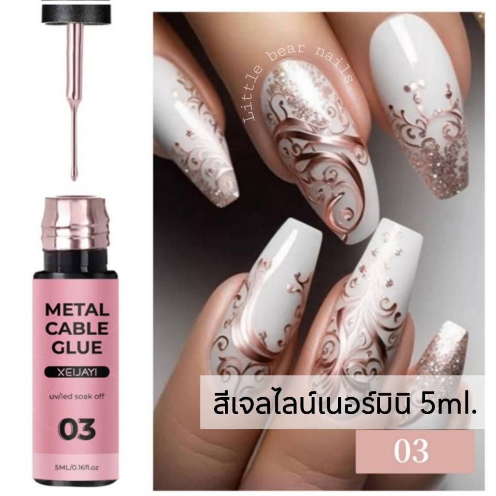 สีเจลไลน์เนอร์ ขนาดมินิ เจลลากเส้น สีเจลเมทาลิค สีเมทาลิค METAL CABEL GULE / DRAWING ADHESIVE NAIL 8ML. XEIJAYI