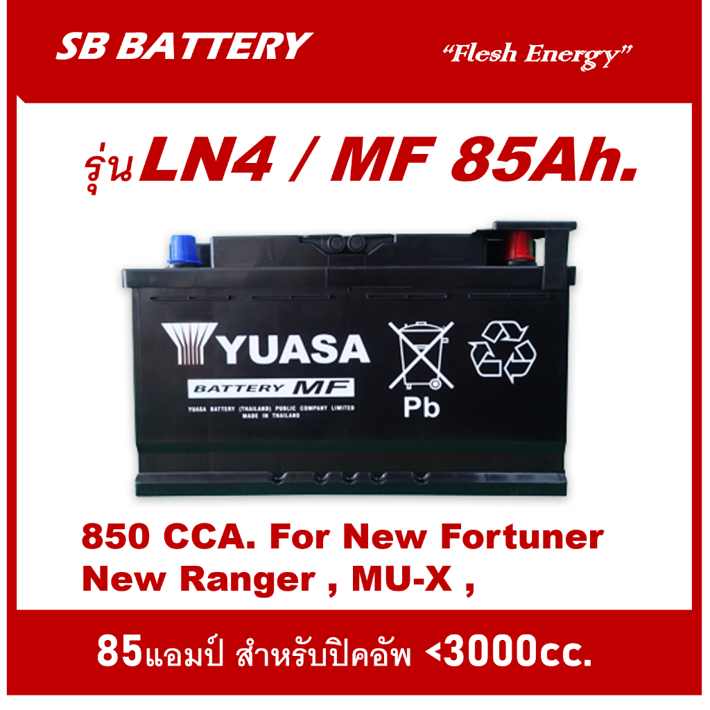 แบตเตอรี่รถยนต์YUASA รุ่น DIN-LN4 /85Ah. พร้อมใช้ /ไม่ต้องเติมน้ำ สำหรับรถเก๋ง .ปิคอัพ .SUV<3000cc.