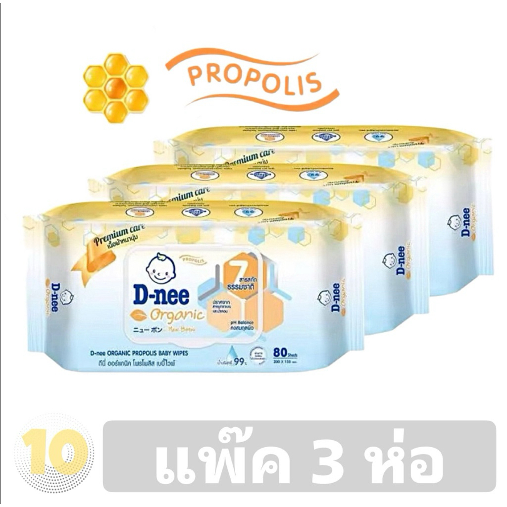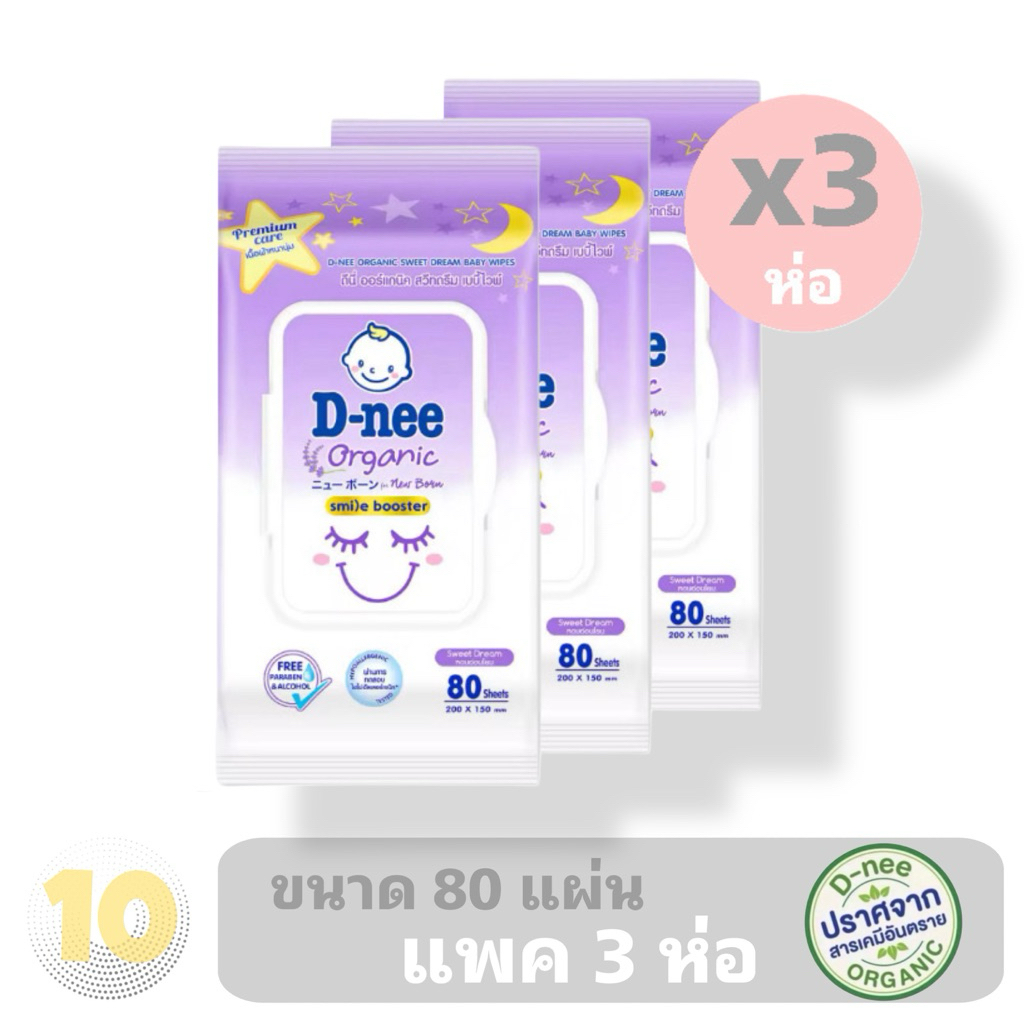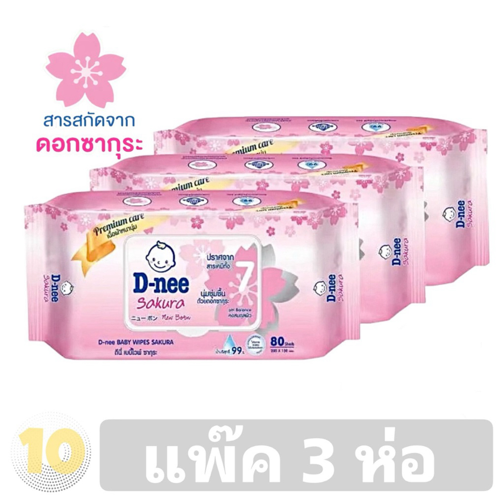 D-nee Wipes ดีนี่ ผ้าเช็ดทำความสะอาดผิวเด็ก ขนาด 80 แผ่น **แพค 3 ห่อ**