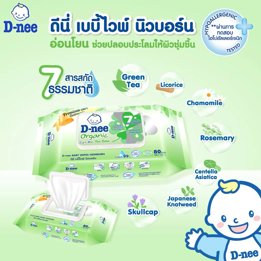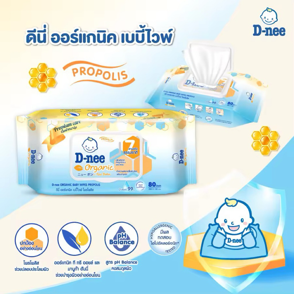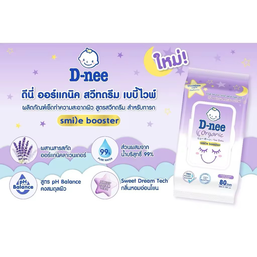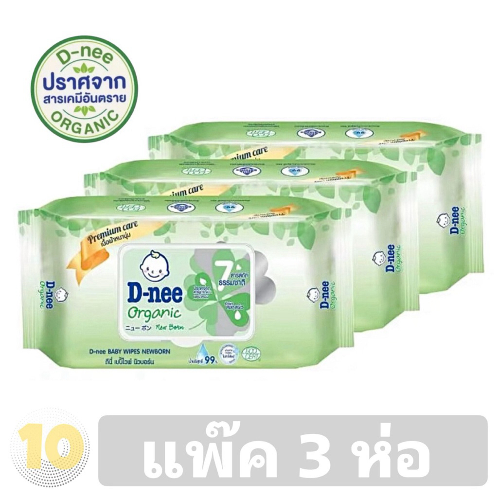 D-nee Wipes ดีนี่ ผ้าเช็ดทำความสะอาดผิวเด็ก ขนาด 80 แผ่น **แพค 3 ห่อ**