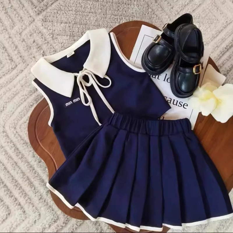 [Namsaii kids]🔥พร้อมส่ง🔥ชุดเซท2ชิ้น ชุดเด็กผู้หญิง ชุดนักเรียนหญิง เสื้อโปโล+กระโปรง 2025 สไตล์เกาหลี