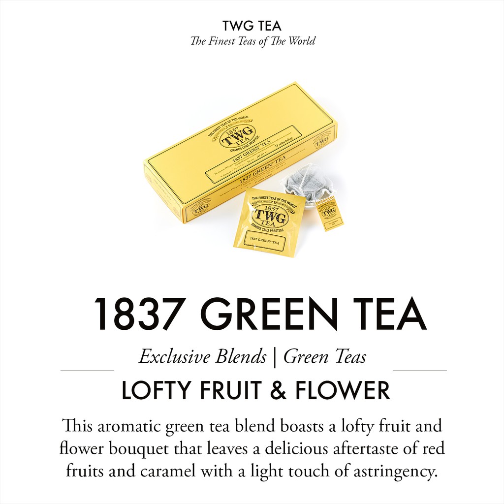 TWG Tea 1837 Green Tea Cotton Teabag Box / ชา ทีดับเบิ้ลยูจี ชาเขียว 1837 กรีน ที ชนิดซอง บรรจุ 15 ซอง