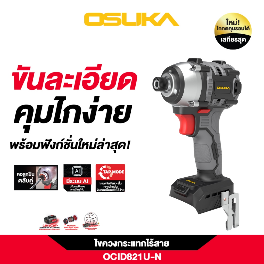 ไขควงกระแทกไร้สาย OCID821U-D1 20V OSUKA มอเตอร์ไร้แปรงถ่าน แรงบิดสูงสุด235 Nm. ปรับได้5โหมด ระบบAi ปรับแรงบิดอัตโนมัติ