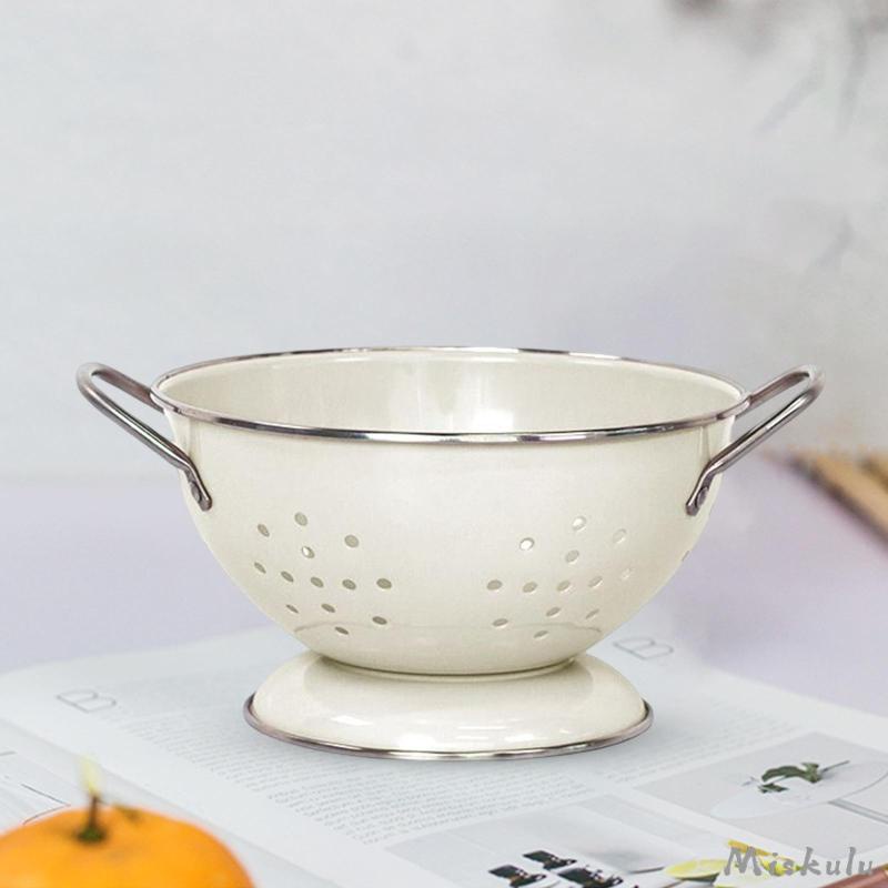[มิชูลู] เคลือบเคลือบเคลือบกระชอนกรองแผ่นชาม,วินเทจระบายน้ําจานผลไม้,ชุดอาหารเย็นโลหะ,ของตกแต่งบ้าน