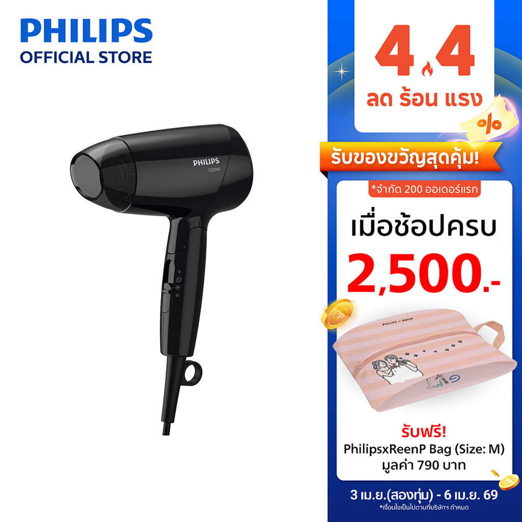 Philips ฟิลิปส์ ไดร์เป่าผม 1200W แรงลม 3 ระดับ ขนาดพกพา พับเก็บได้ รุ่น BHC010/10