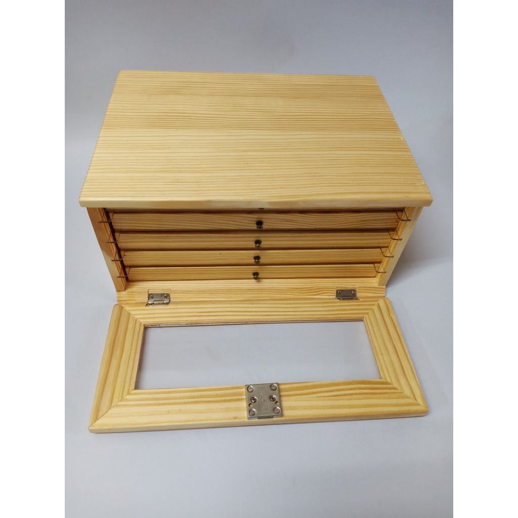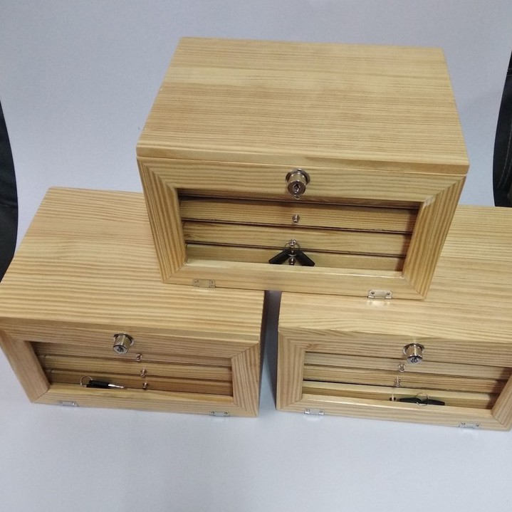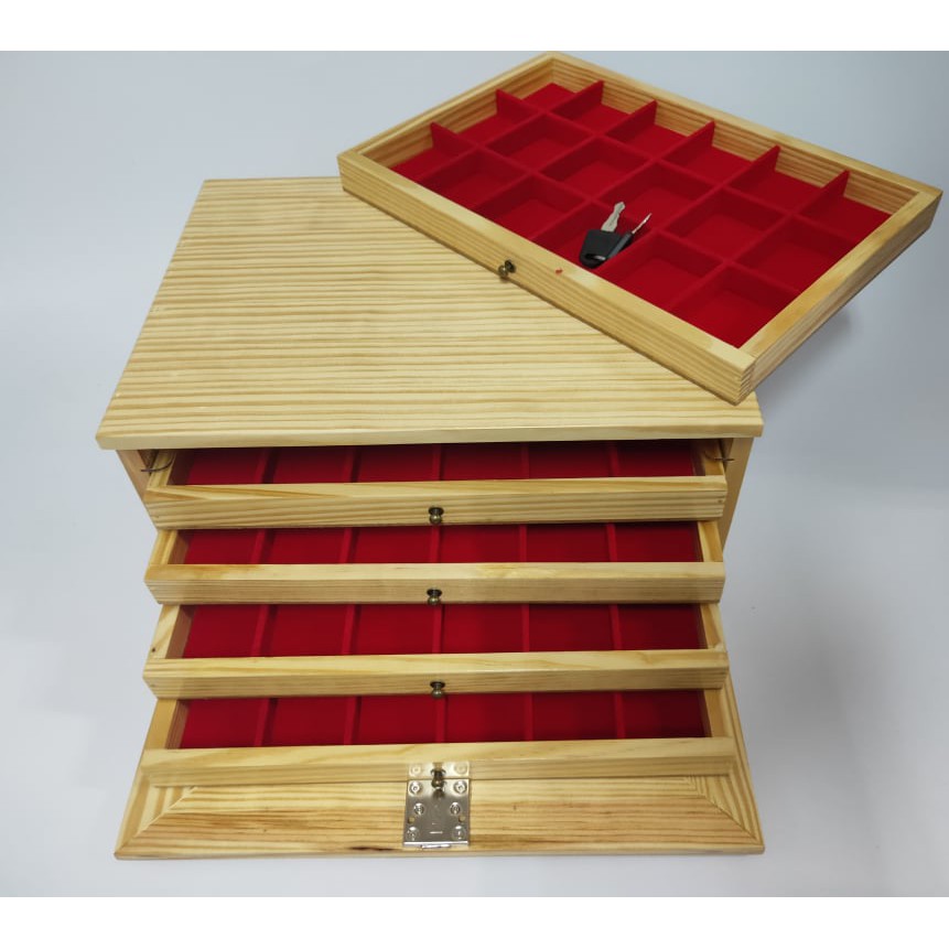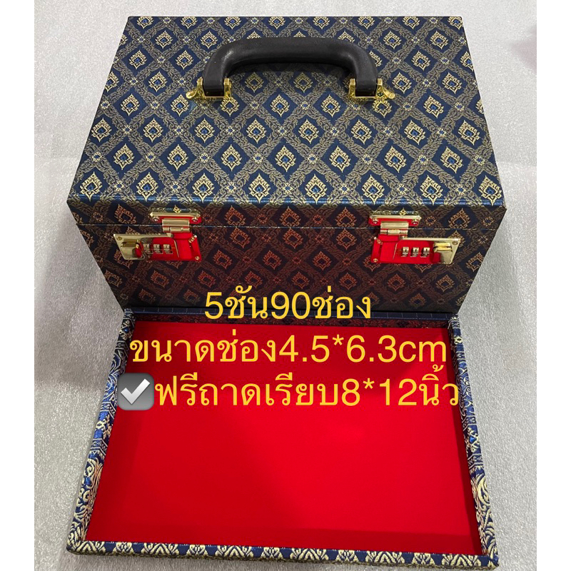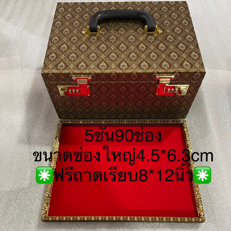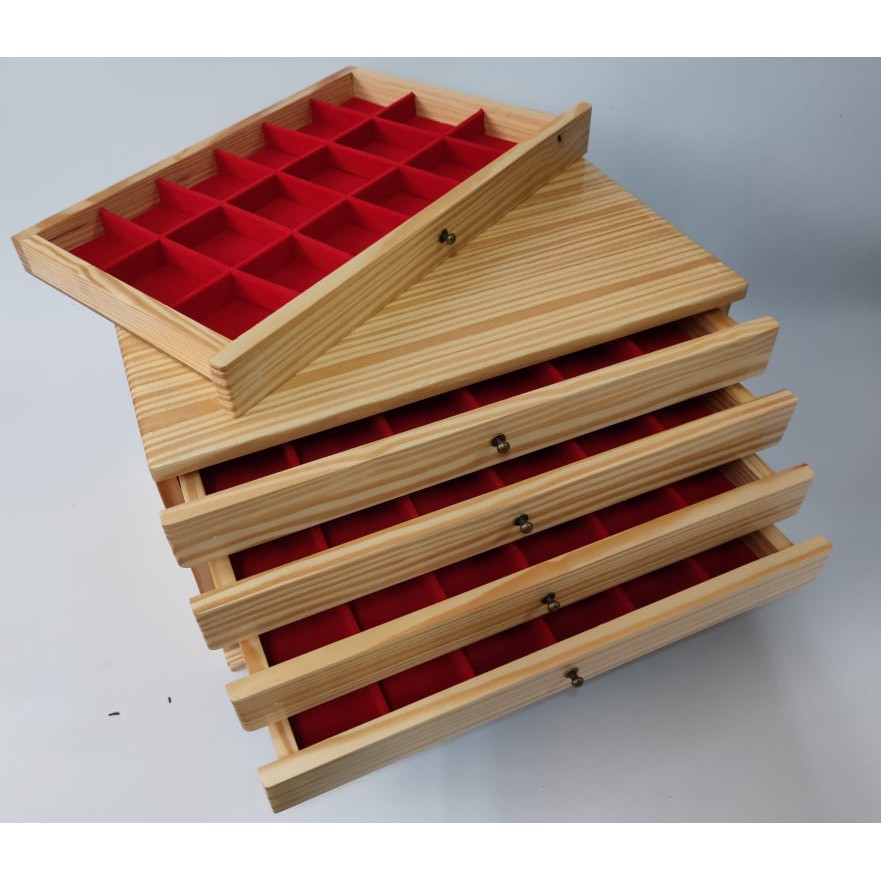 กล่องพระ ตู้ใส่พระ ไม้สน ลิ้นชักไม้สนช่องใหญ่ 4.5*6cm 5 ชั้น 90 ช่อง