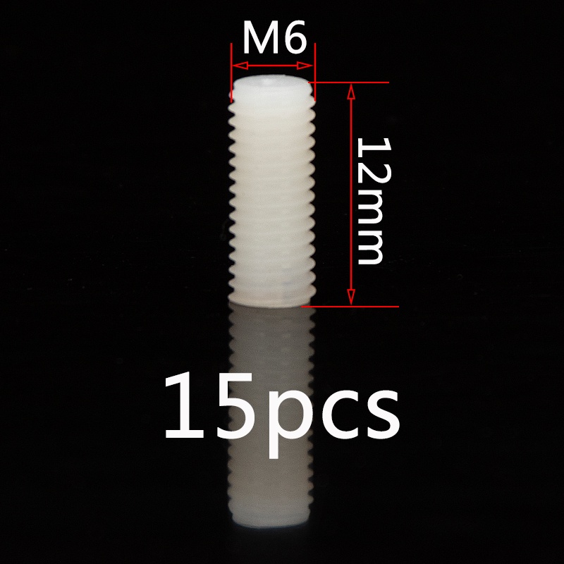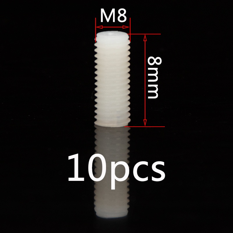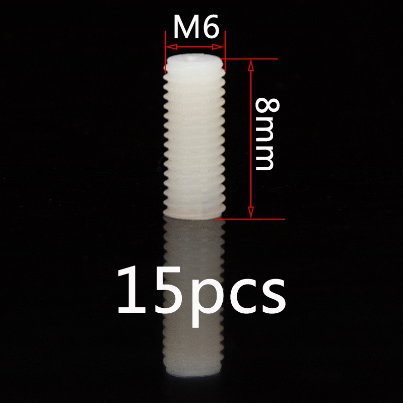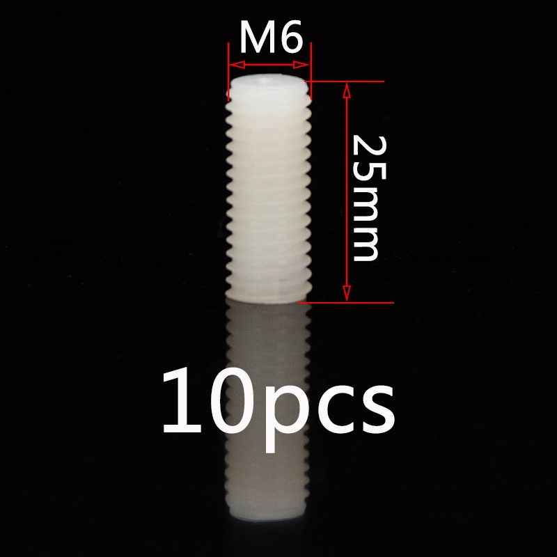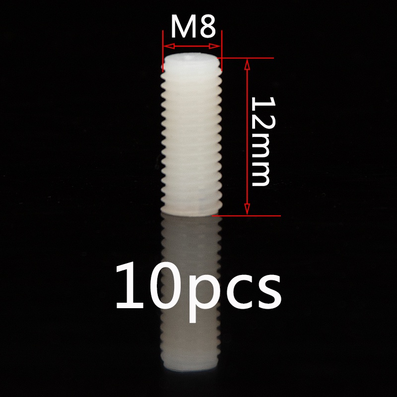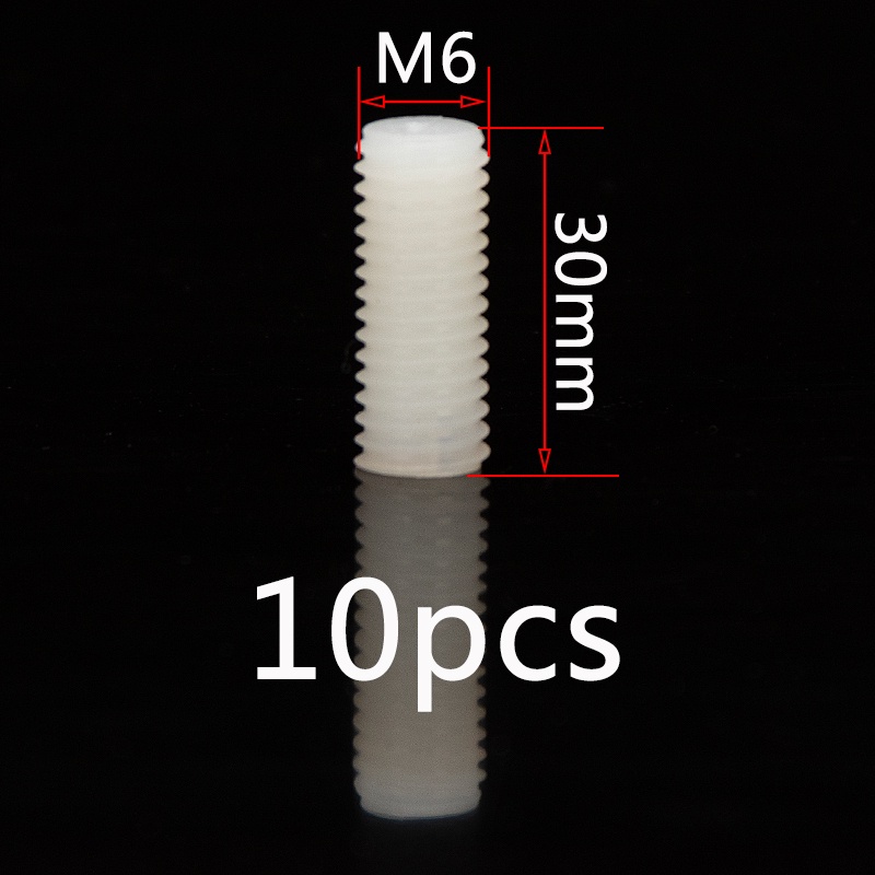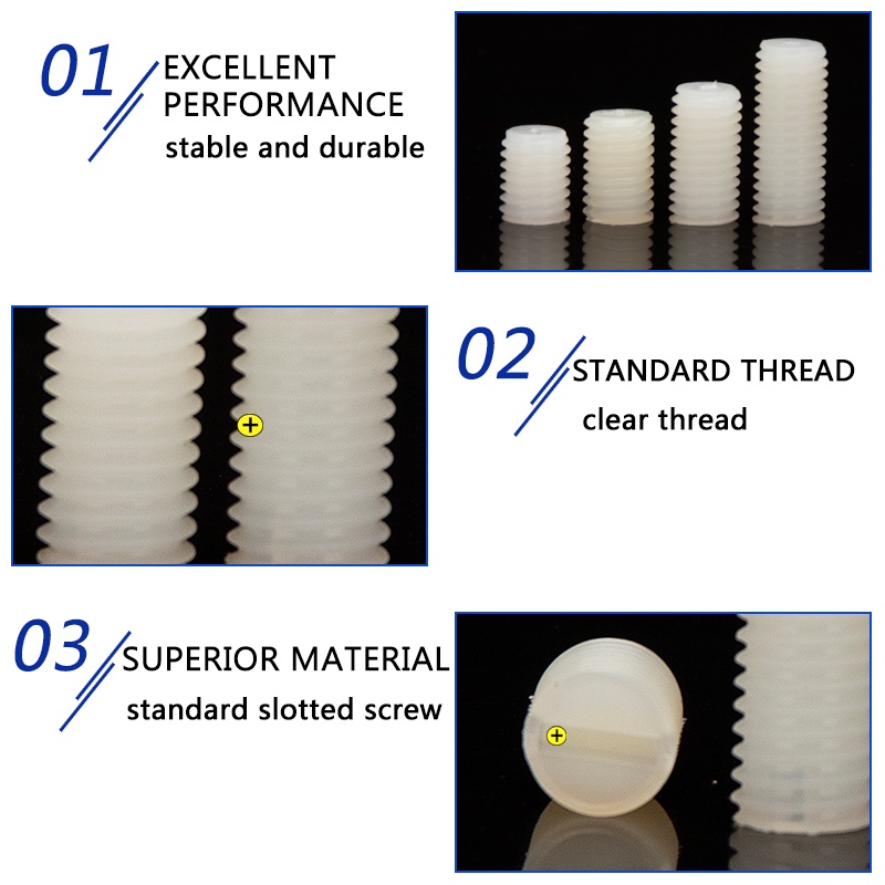 ชุดสกรูเกลียวพลาสติก หัวแบน ไนล่อน M6 M8 M10 M12 ยาว 8 มม.-50 มม. สีขาว