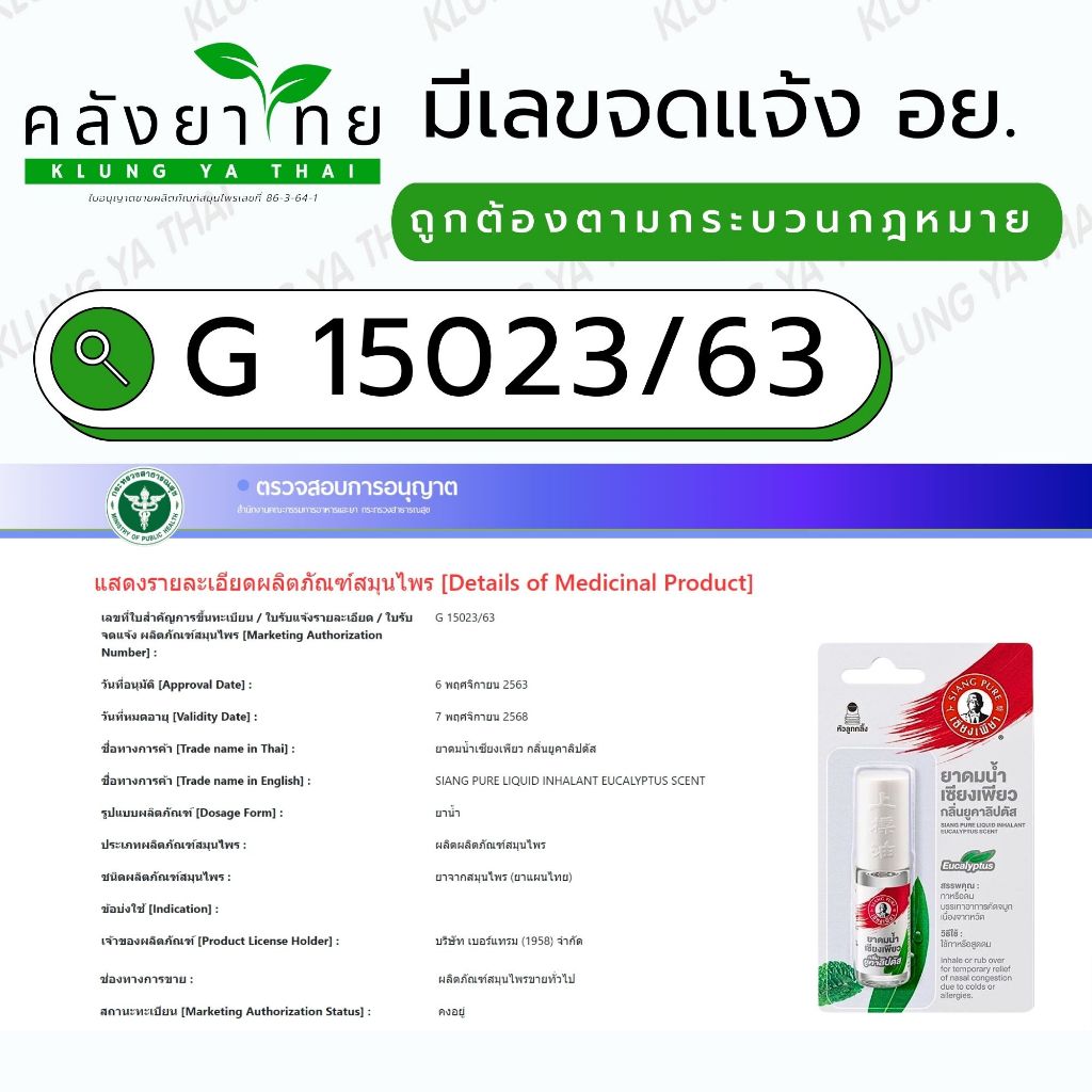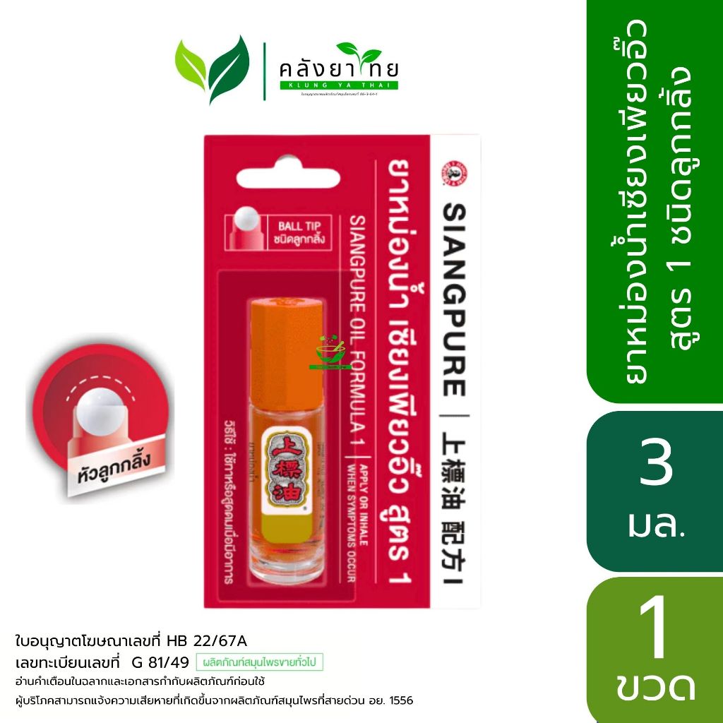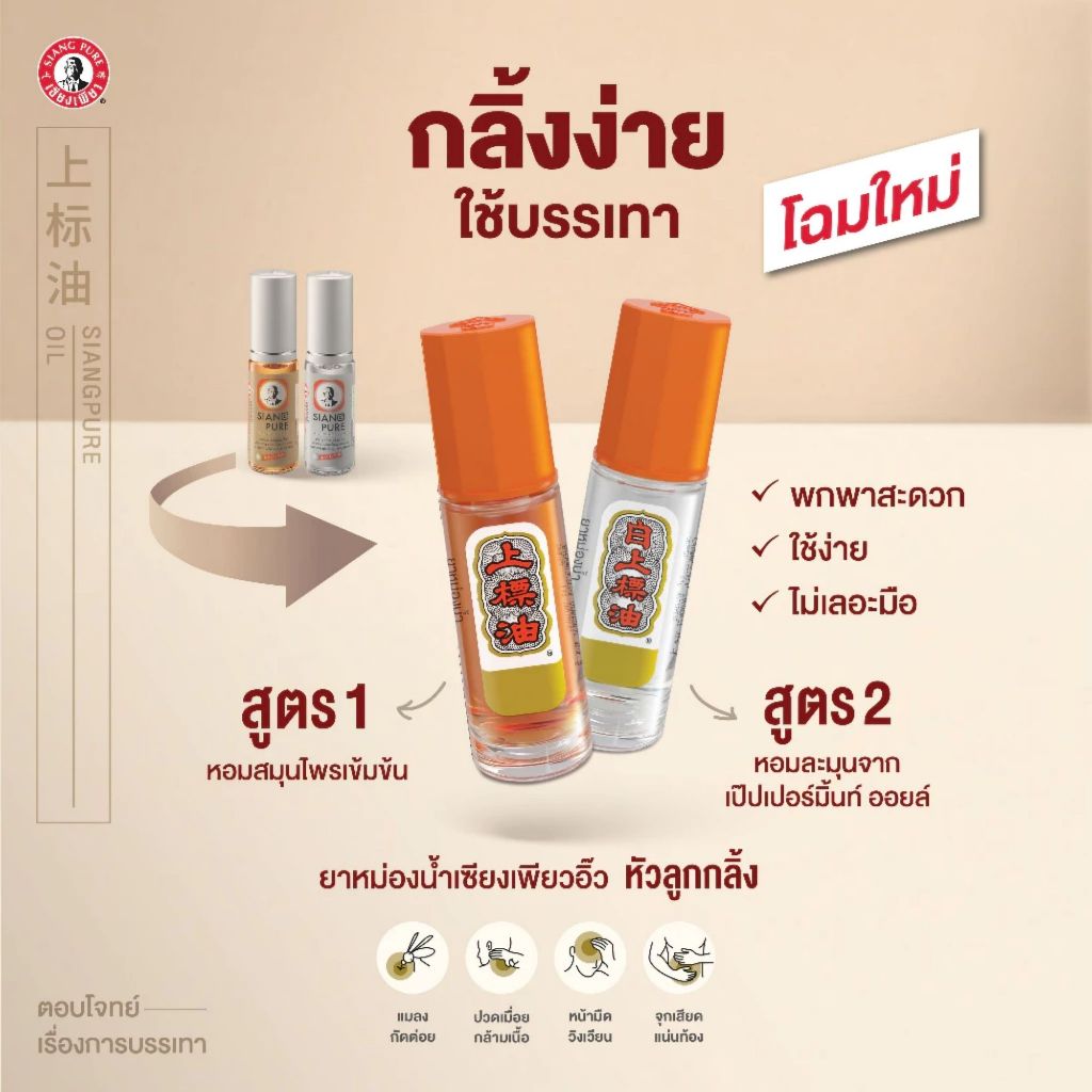 SIANGPURE เซียงเพียวอิ๋ว ยาหม่องน้ำสูตร 1 / ยาหม่องน้ำสูตร 2 / ยาหม่องเหลือง / ยาหม่องขาว