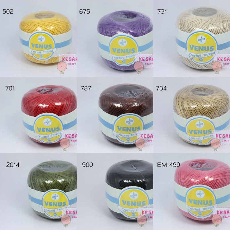ด้ายถัก Venus Cotton Crochet (เบอร์ 20) 50 กรัม ด้ายถักวีนัสคอตตอน ด้ายถักหูกระเป๋า ด้ายถักเสื้อ
