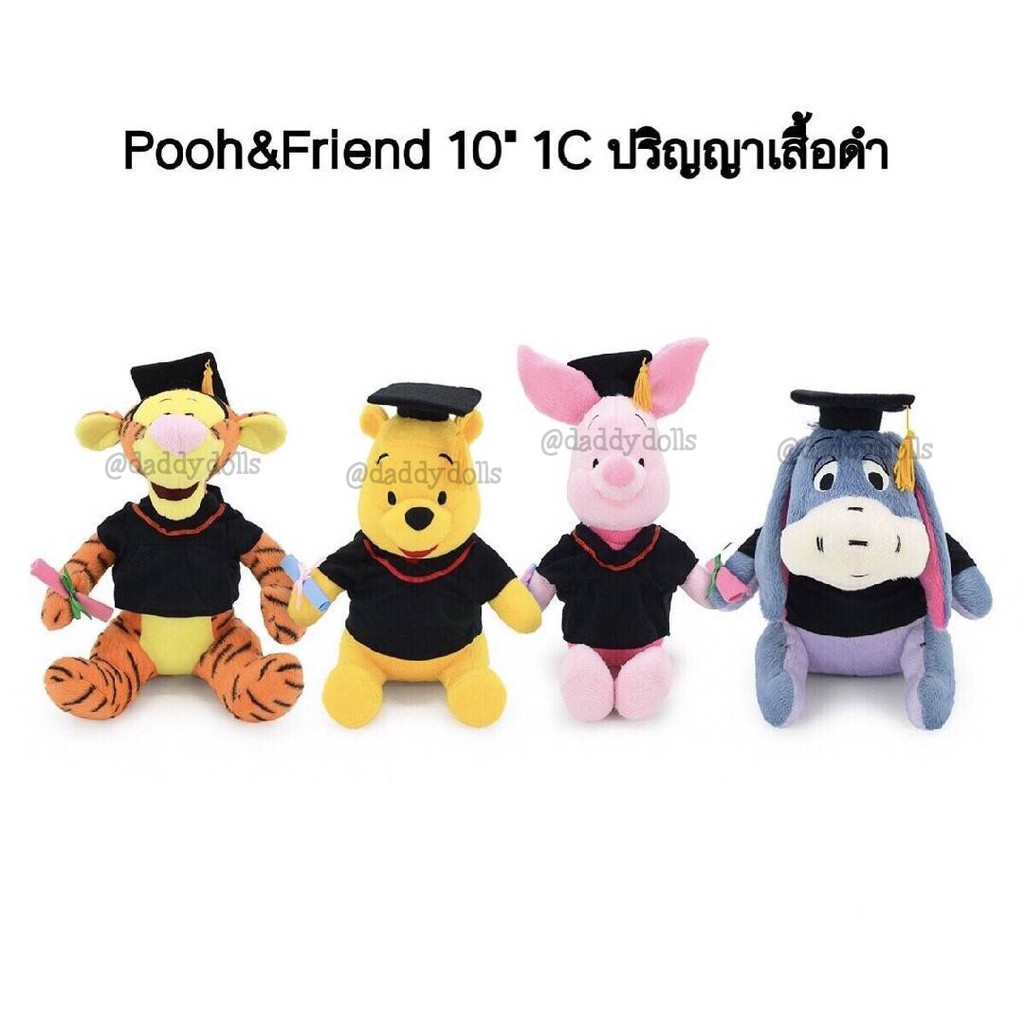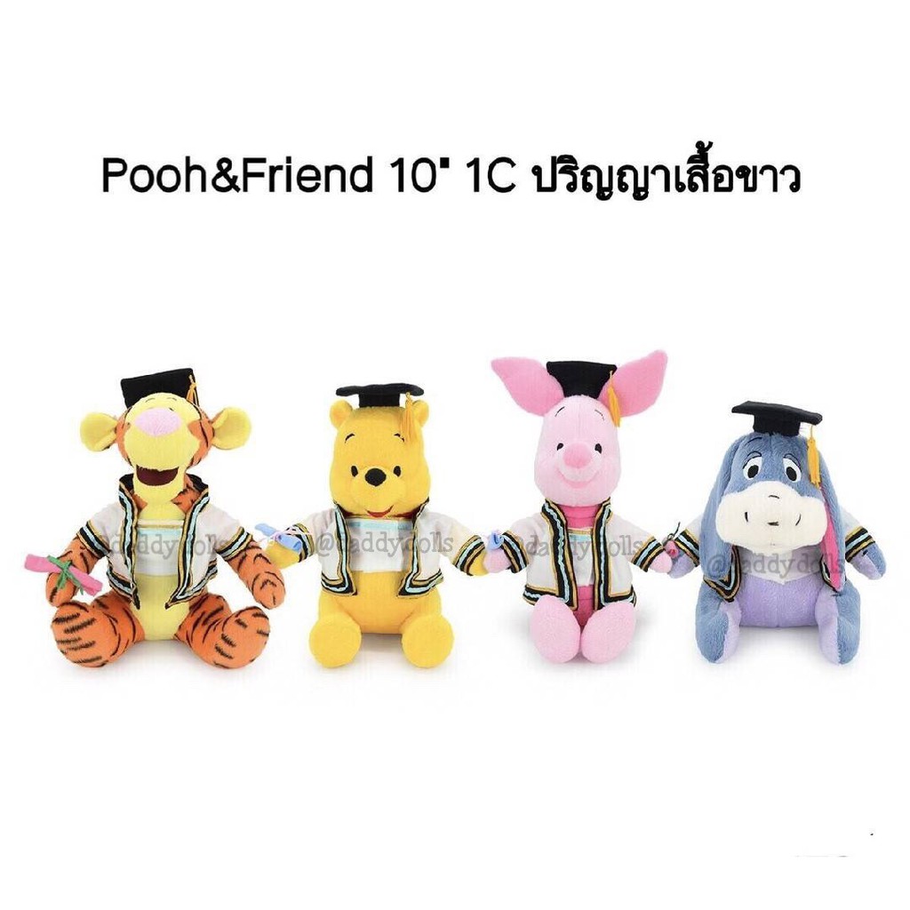 ตุ๊กตา Pooh หมีพูห์ & Piglet พิกเล็ต & Eeyore อียอร์ & Tigger ทิกเกอร์ ชุดรับปริญญา 10นิ้ว