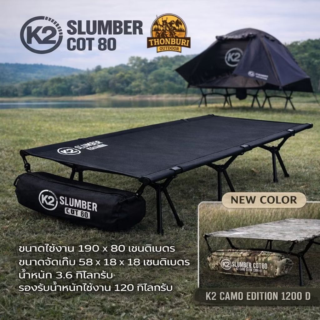 เตียง K2 SLUMBER COT 80 เตียงพับ เตียงสนาม สำหรับแคมป์ปิ้ง