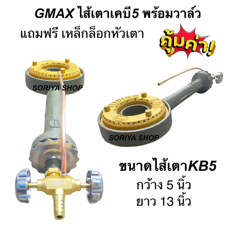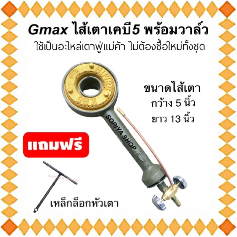 ไส้เตาแก๊ส หัวฟู่เคบี5 Gmax พร้อมวาล์ว แถมฟรีตัวที ไส้เตา5นิ้ว อะไหล่เตาแก๊สแม่ค้า