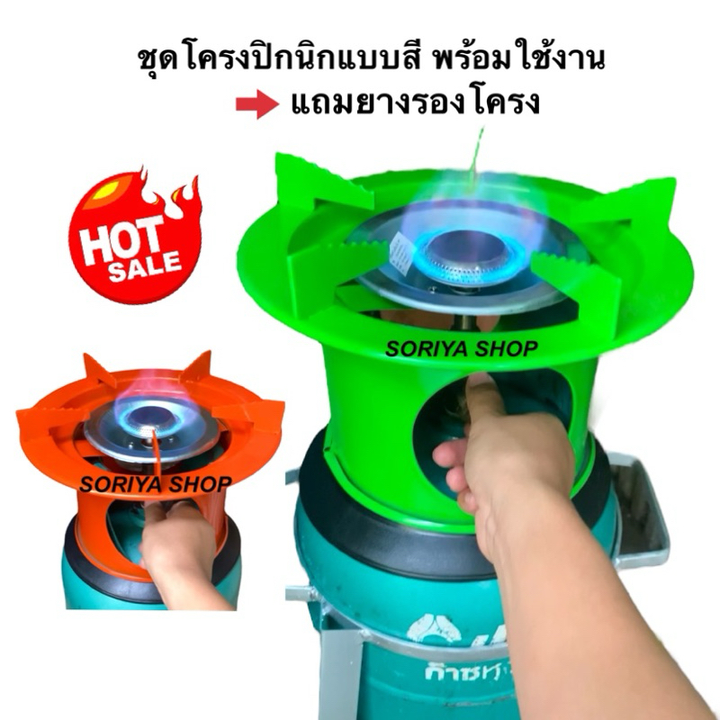 ชุดโครงเตาแก๊สปิกนิก สีส้มและสีเขียว เลือกสีได้ พร้อมหัวฝักบัว แถมยางรองโครง สำหรับถังปิกนิก4กกทุกยี่ห้อ