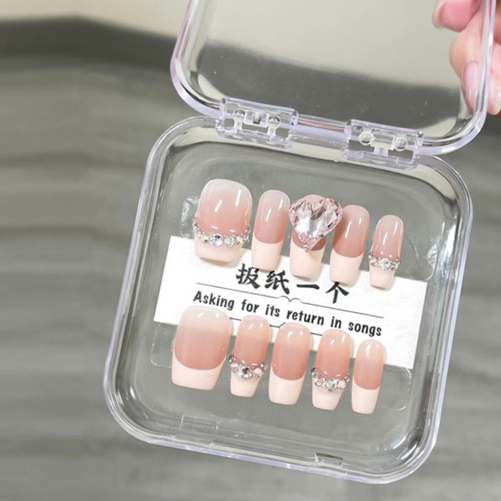 กล่องใส่เล็บปลอม ทรงมน พลาสติกใส อย่างดี กว้าง ยาว 73mm.