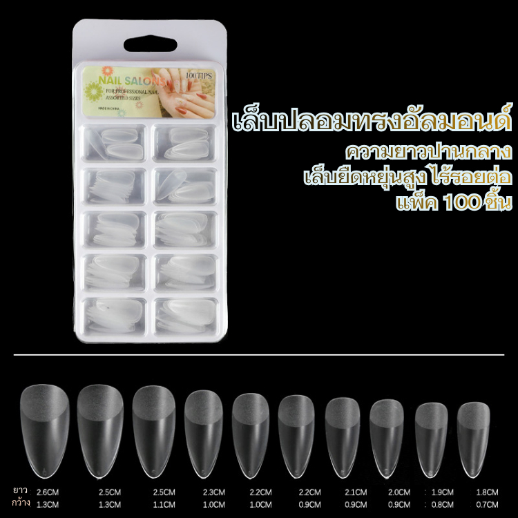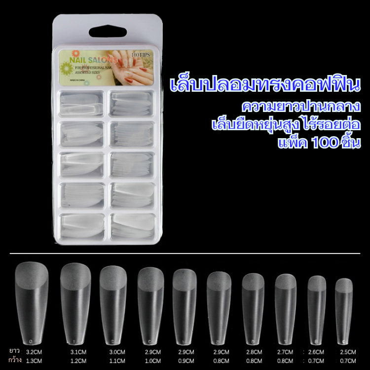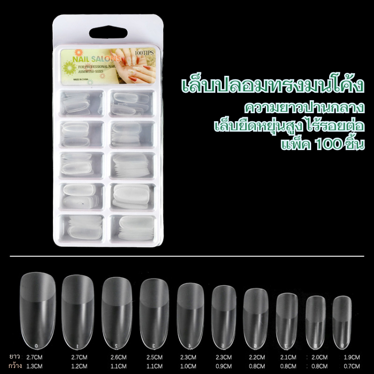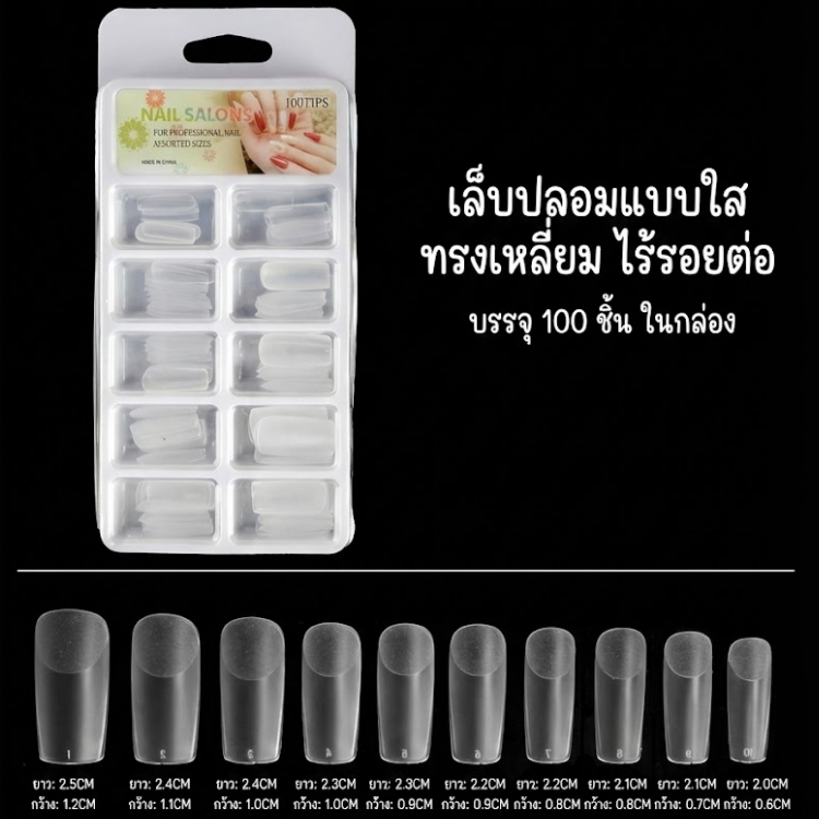 เล็บปลอมปลายใส สำหรับต่อเล็บ | Nail Tips หลายทรงให้เลือก | ต่อเล็บ เนียนไร้รอยต่อ /100ชิ้น