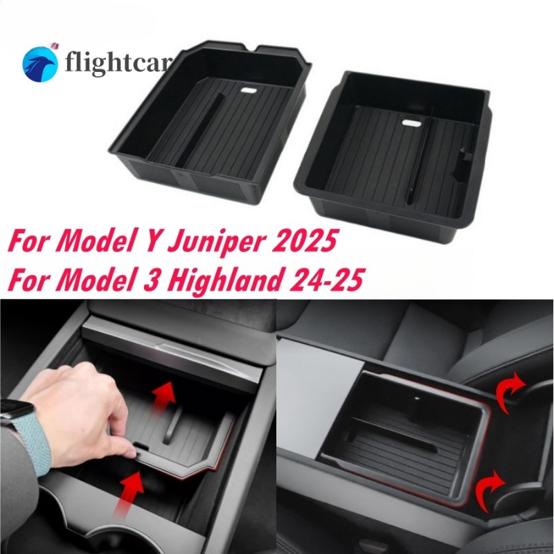 สําหรับ Tesla รุ่น Y Juniper 2025 & รุ่น 3 Highland 2024 2025 ABS คอนโซลกลางถาด Armrest กล่องเก็บอุปกรณ์เสริม