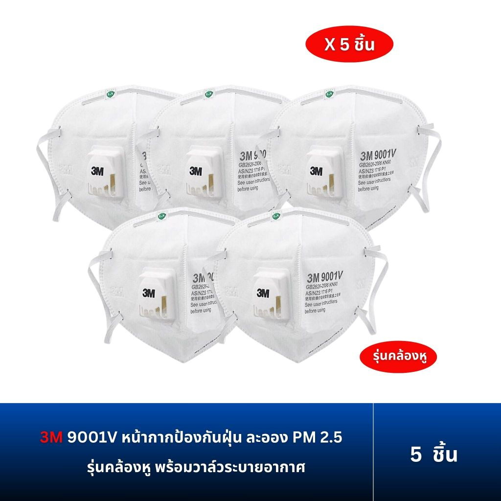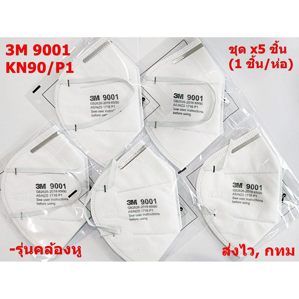 (x5 ชิ้น) 3M 9001 9001V หน้ากากป้องกันฝุ่นละออง มาตรฐาน KN90/P1 แบบคล้องหู