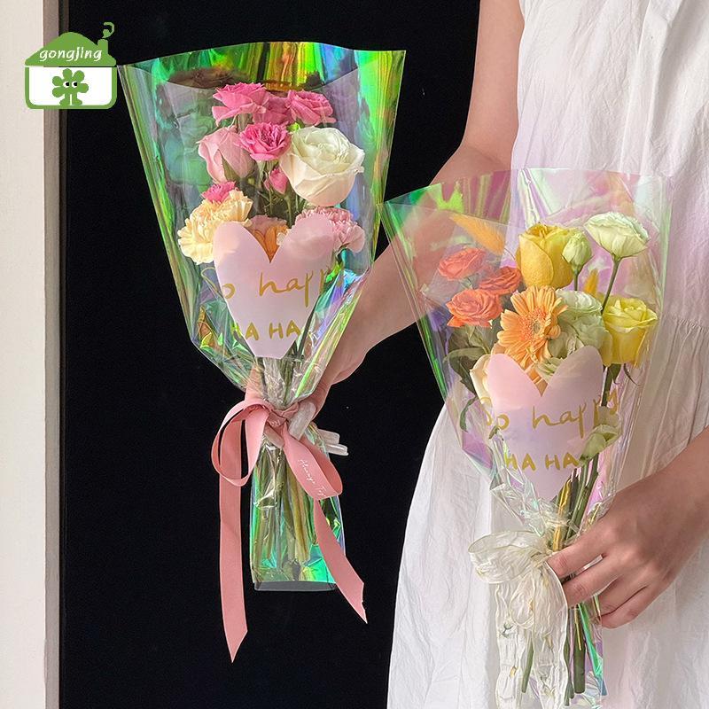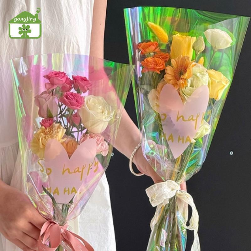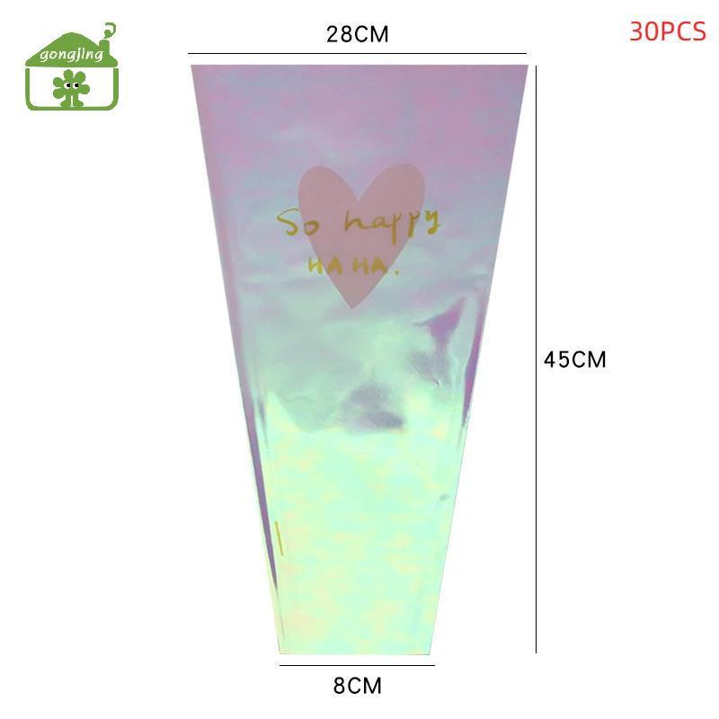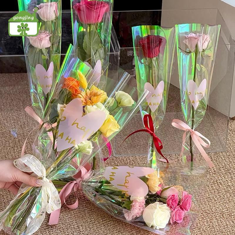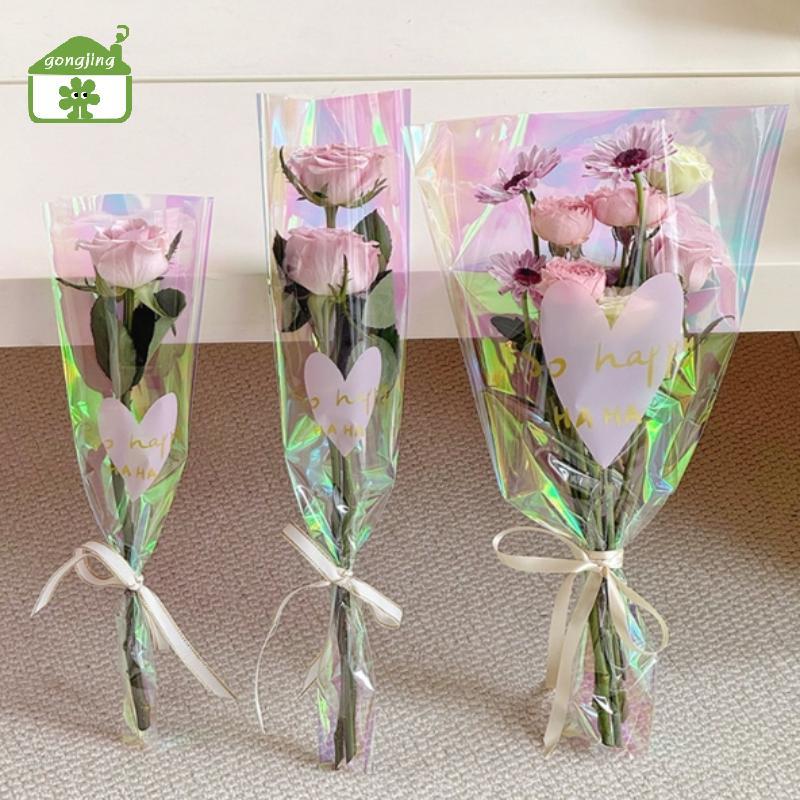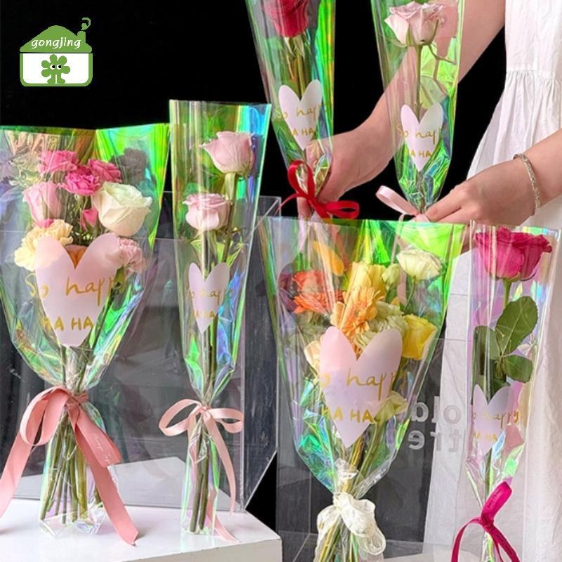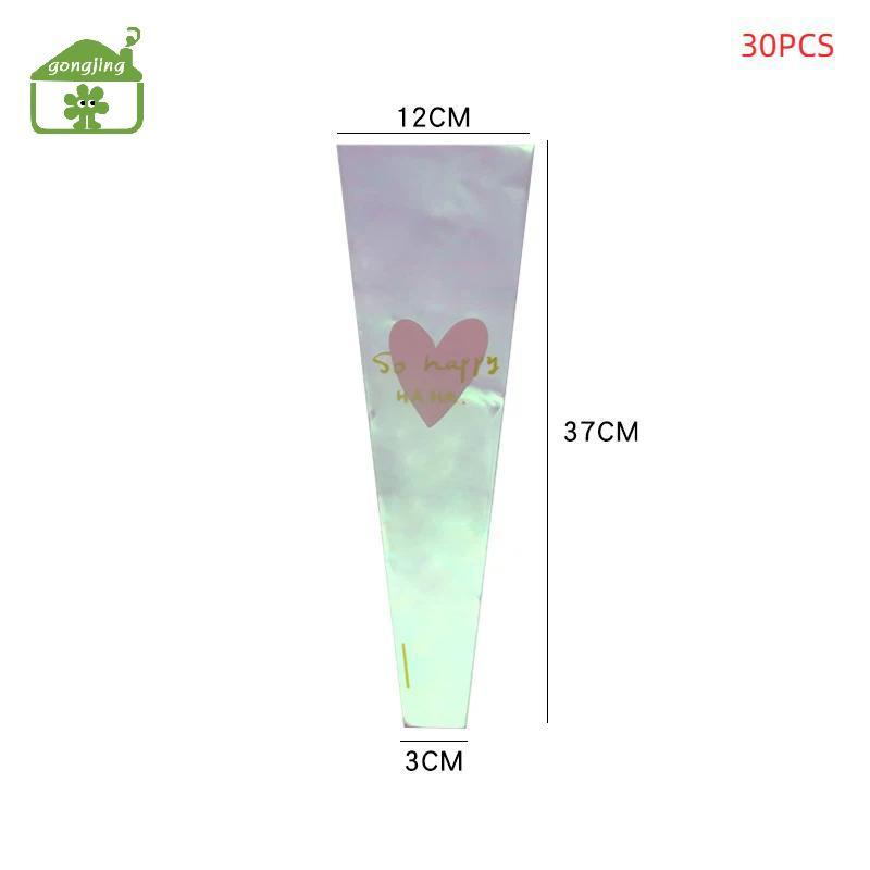 [Gong] 30 ชิ้นโปร่งใสกุหลาบถุงบรรจุภัณฑ์ช่อดอกไม้ถุงพลาสติกช่อดอกไม้กระดาษห่อหนึ่งตรงกระเป๋าดอกไม้ Packagin th