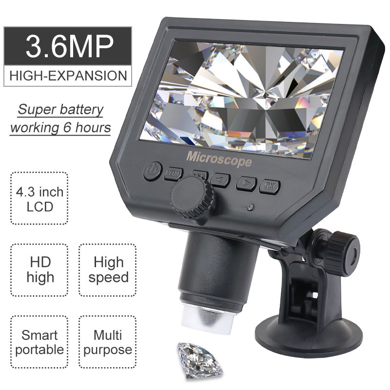 กล้องจุลทรรศน์ดิจิทัล 600X กล้องจุลทรรศน์วิดีโออิเล็กทรอนิกส์ 4.3 นิ้ว HD LCD บัดกรีกล้องจุลทรรศน์ซ่อมโทรศัพท์แว่นขยาย