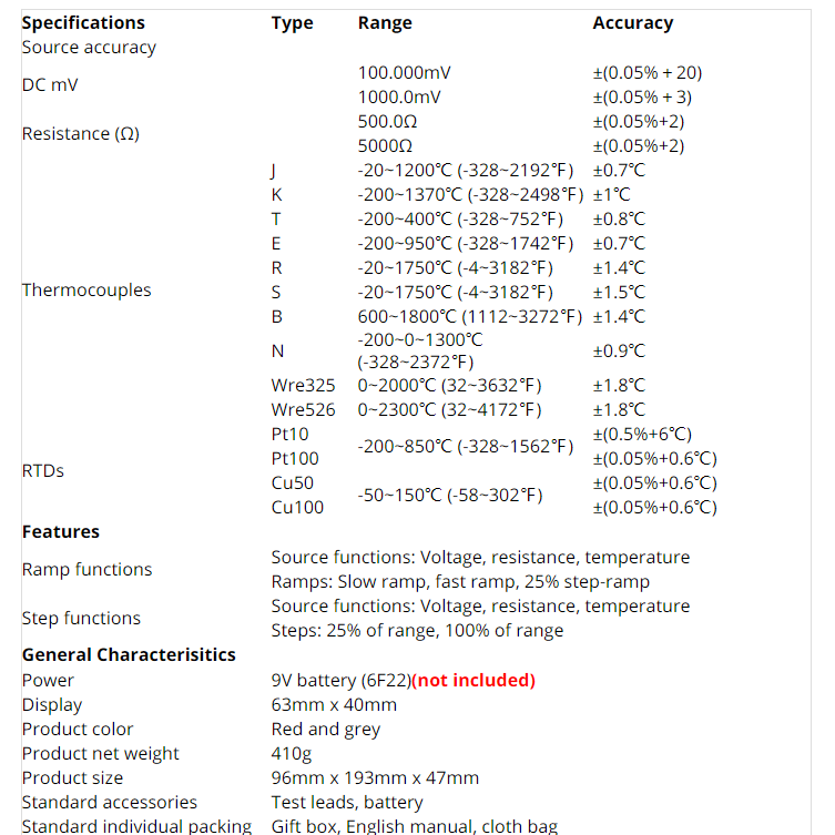 Uni-t UT701 เครื่องสอบเทียบอุณหภูมิแบบใช้มือถือความแม่นยําสูงและความสามารถสูง Thermocouple Calibrator