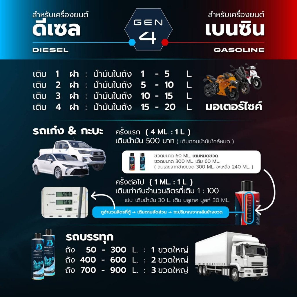 Bluetecboost เบนซิน 60ml. น้ำยาล้างหัวฉีดเพิ่มประสิทธิภาพ เพิ่มการเผาไหม ถัง-ท่อ-แคต ครบจบในขวดเดียว