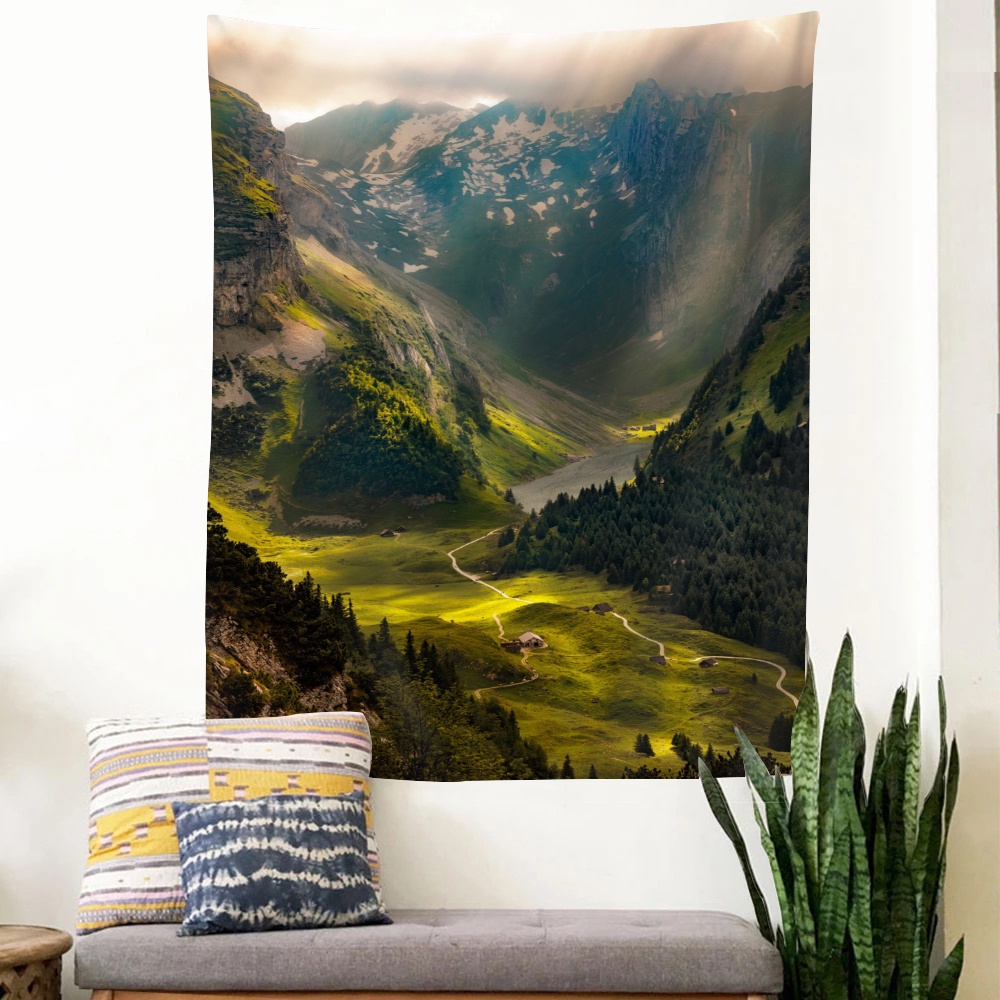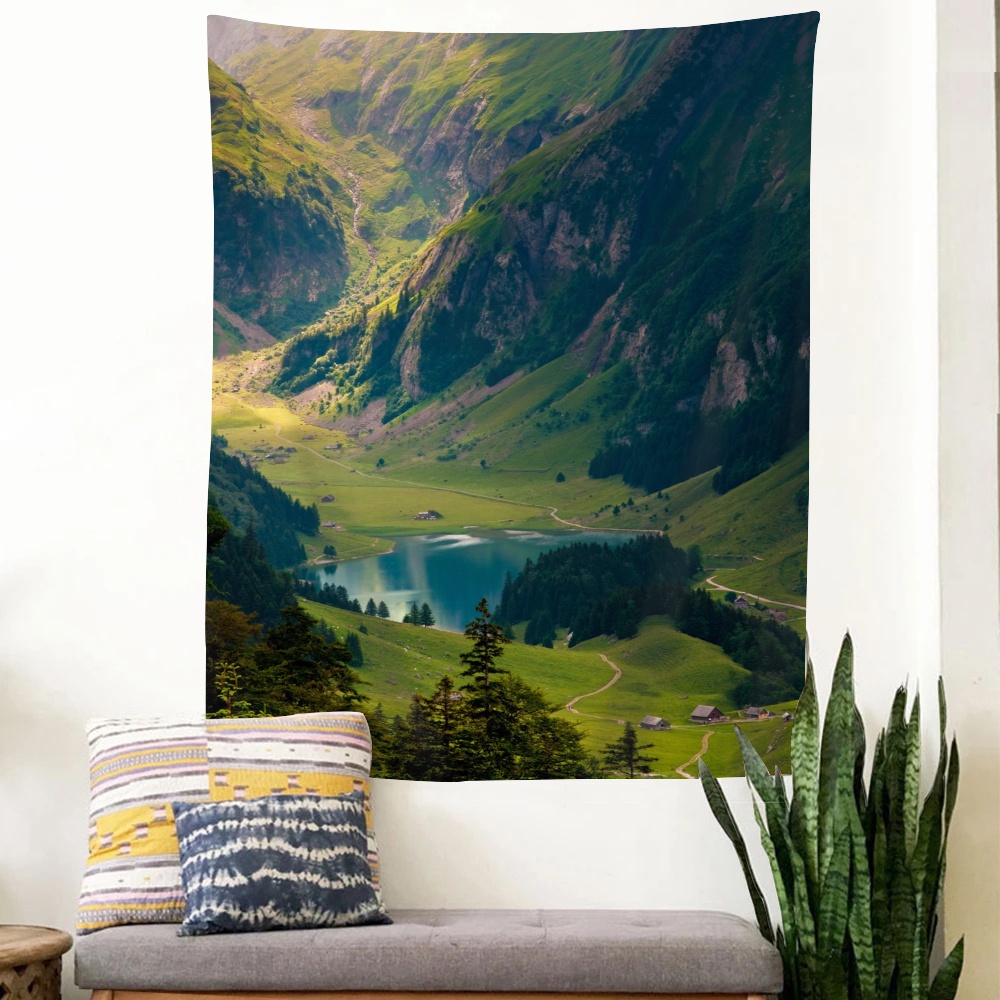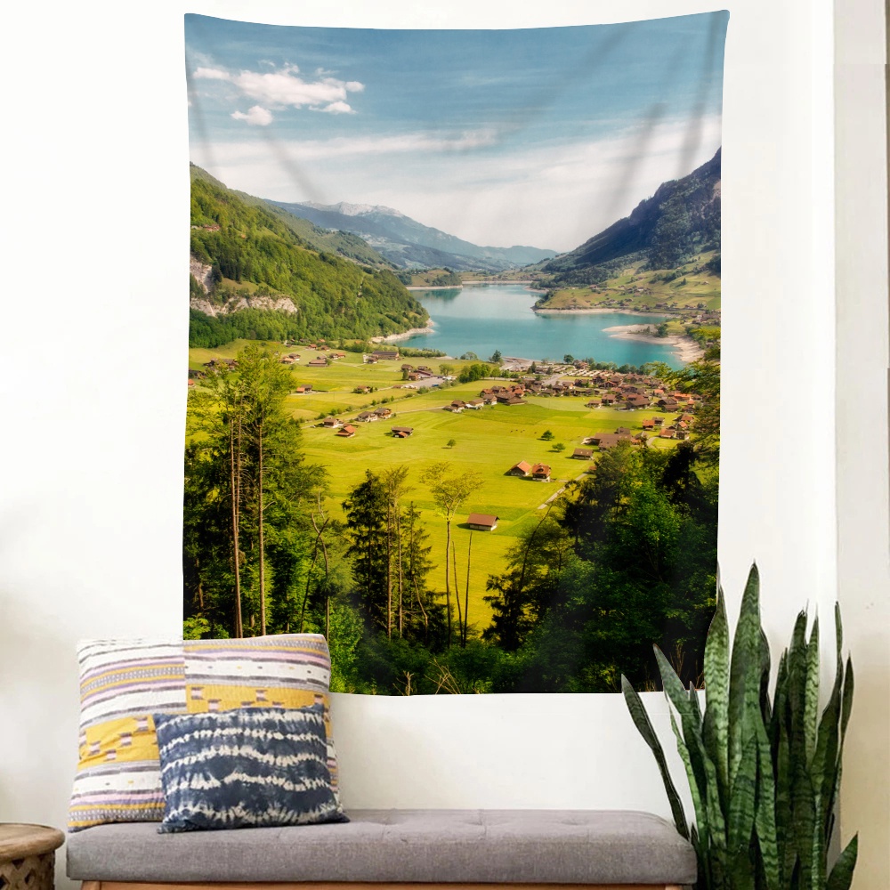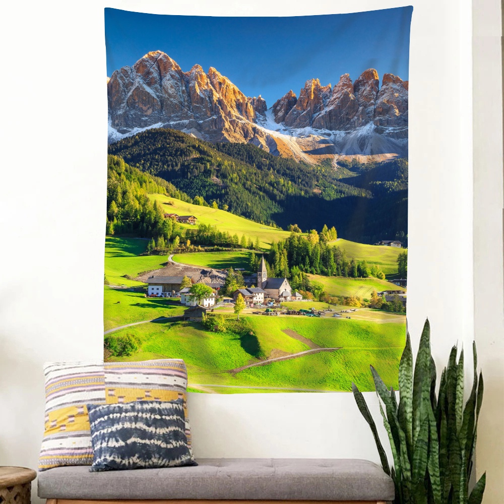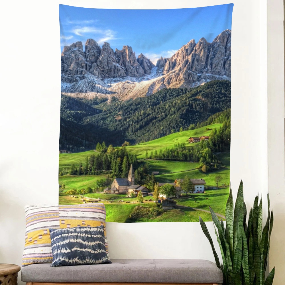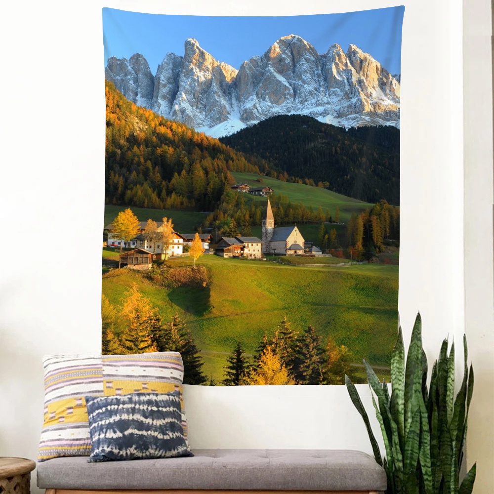 พรมโพลีเอสเตอร์ ลายภูเขายุโรป สําหรับแขวนตกแต่งผนังบ้าน ห้องนอน หอพัก