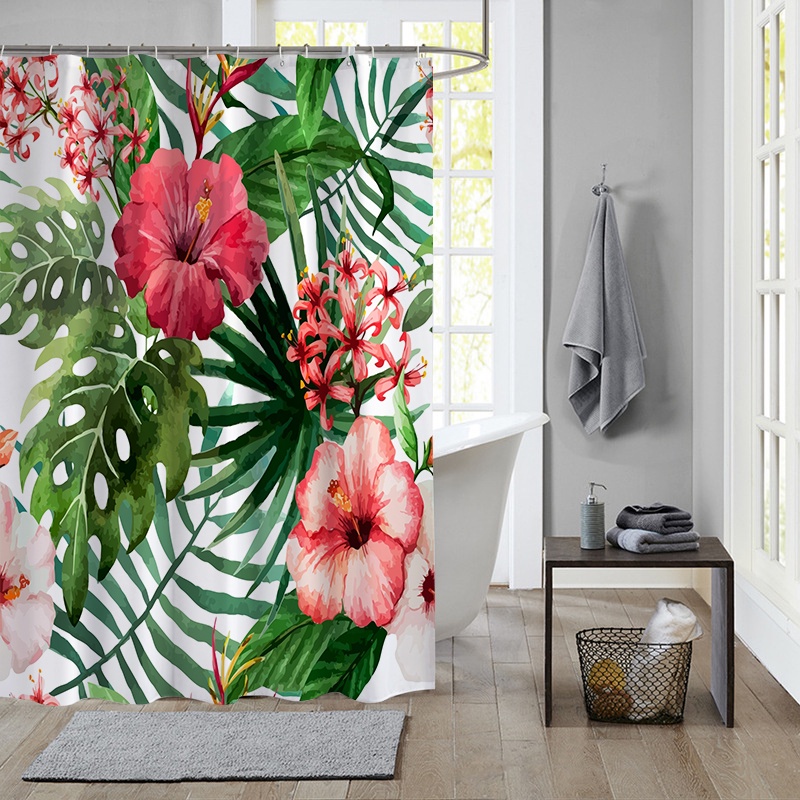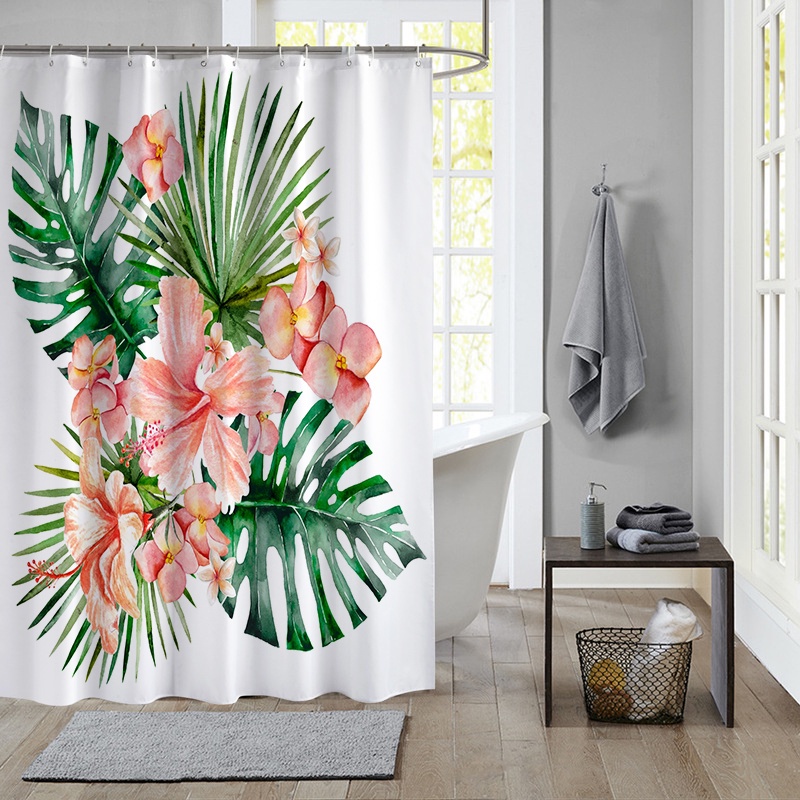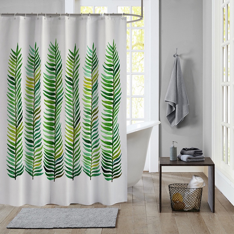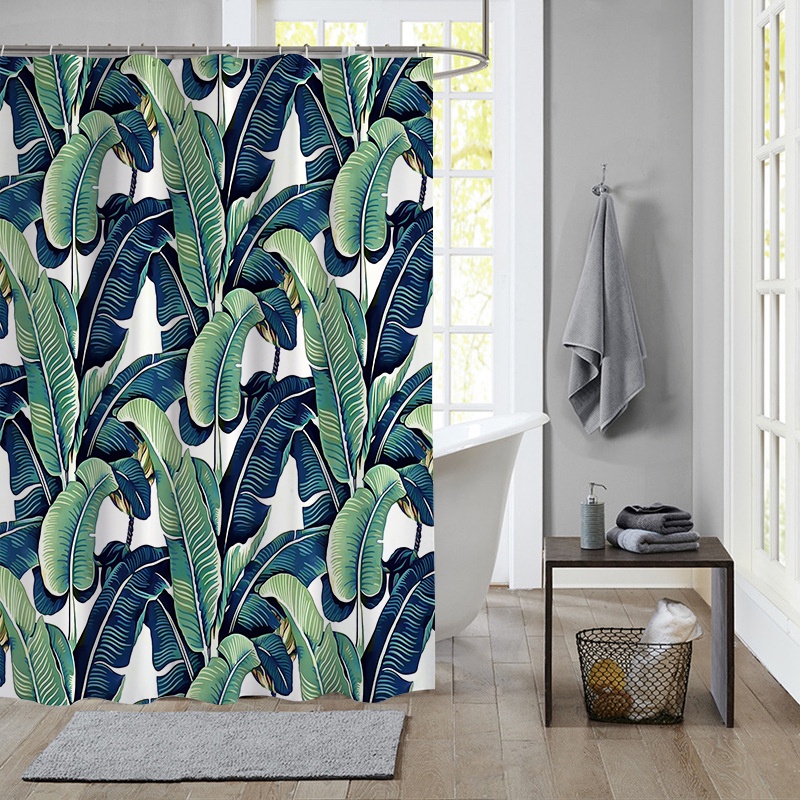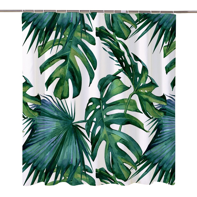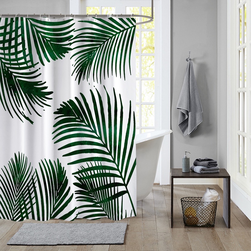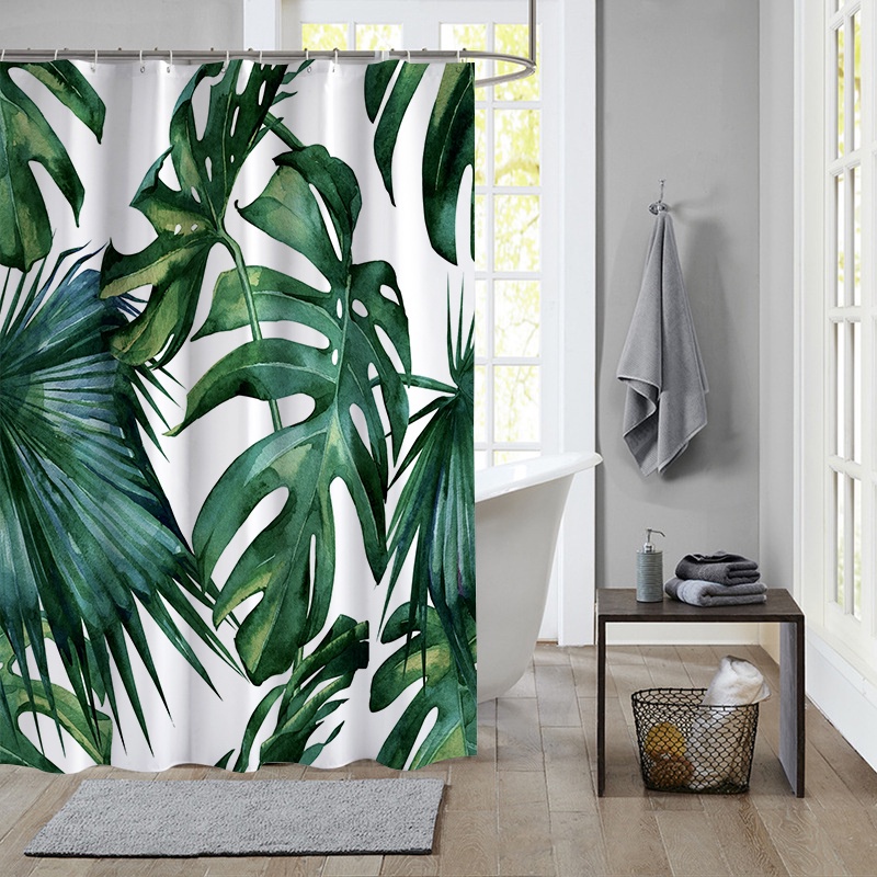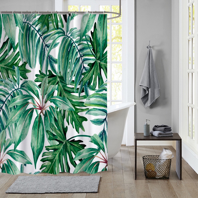 ผ้าม่านโพลีเอสเตอร์ กันน้ํา ลายใบไม้เขตร้อน สีเขียว พร้อมตะขอ 12 ตะขอ สําหรับตกแต่งห้องน้ํา
