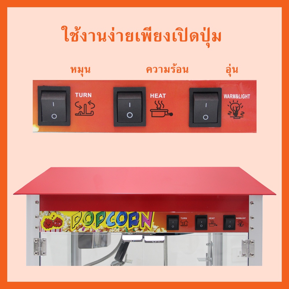JTLตู้ทำป๊อปคอร์น เครื่องทำป๊อปคอร์น เครื่องทำข้าวโพดคั่ว ตู้ป็อบคอร์น 8ออนซ์ เครื่องทำป็อปคอน IN-HP-6B
