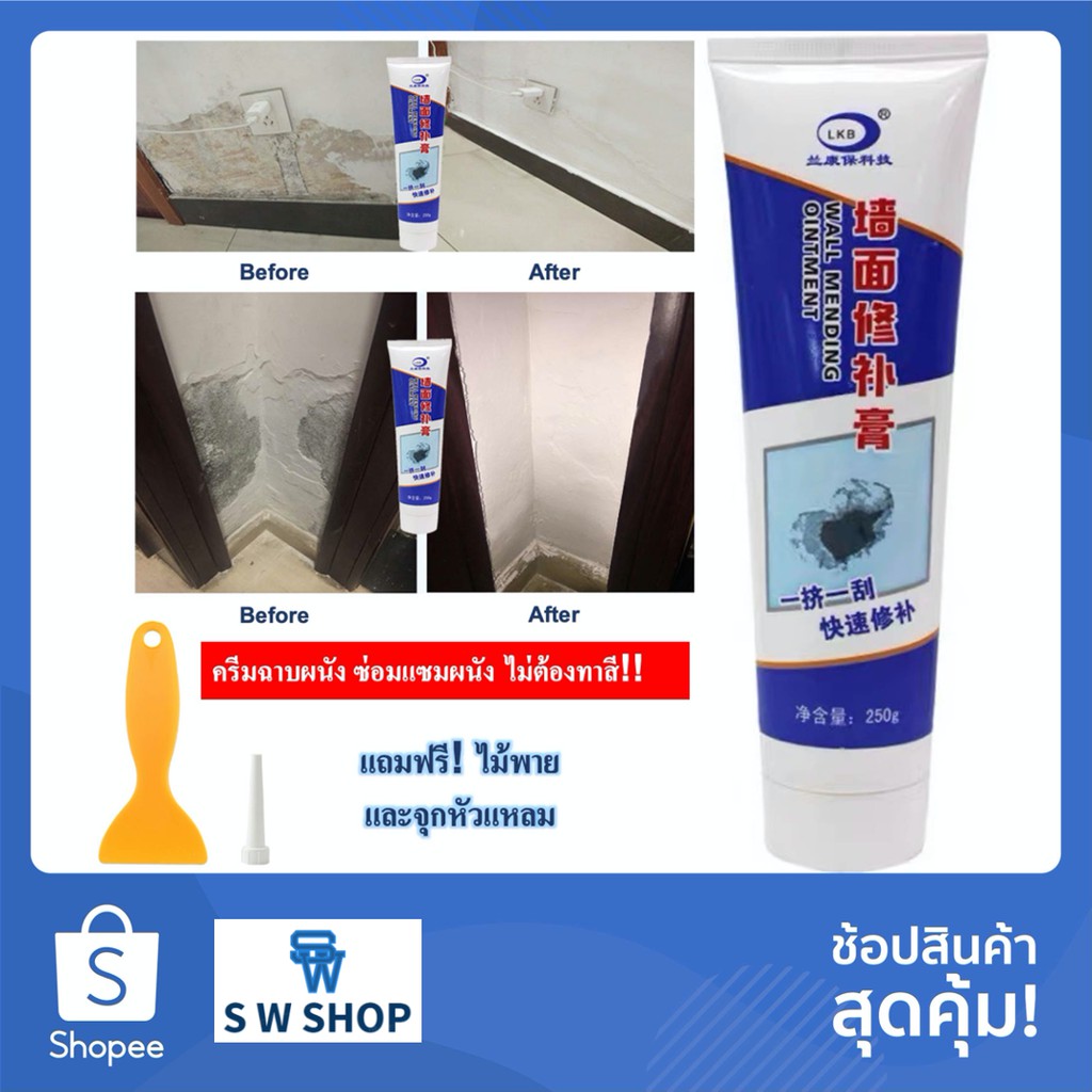 ครีมซ่อมผนัง กาวซ่อมผนัง ซ่อมรอยรั่ว ซ่อมรอยแตก อุดรอยรั่ว รอยร้าว รูตะปู ขนาด 250 กรัม Wall Repair