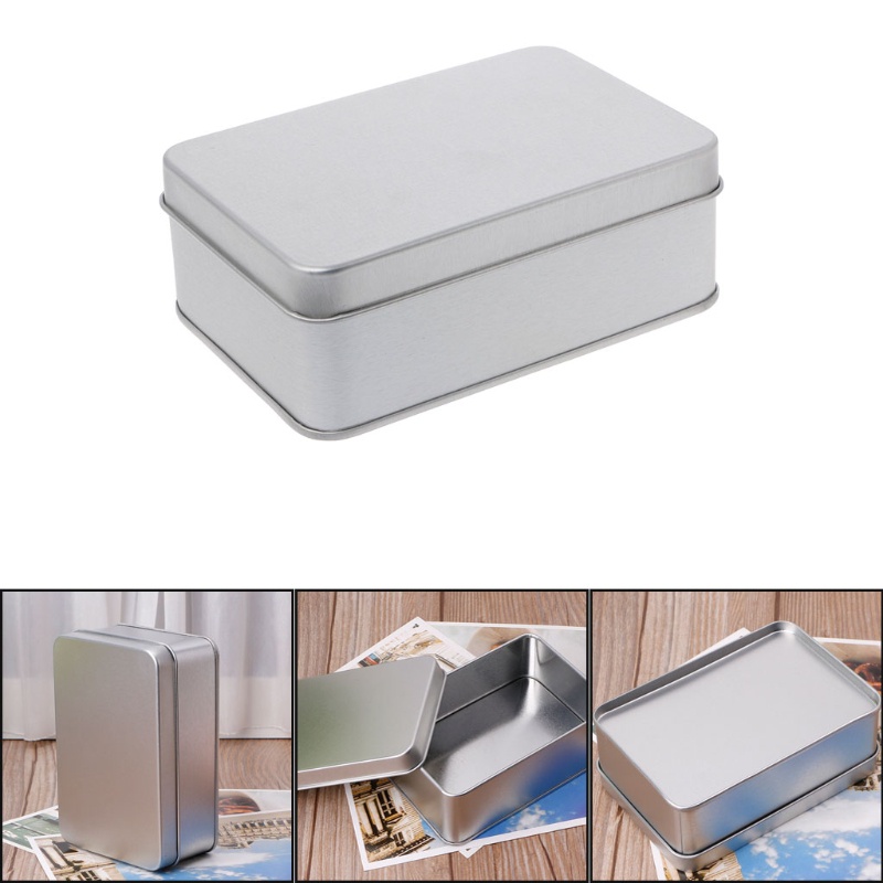 Be> กล่องโลหะเปล่า ทรงสี่เหลี่ยมผืนผ้า สีเงิน สําหรับจัดเก็บของ