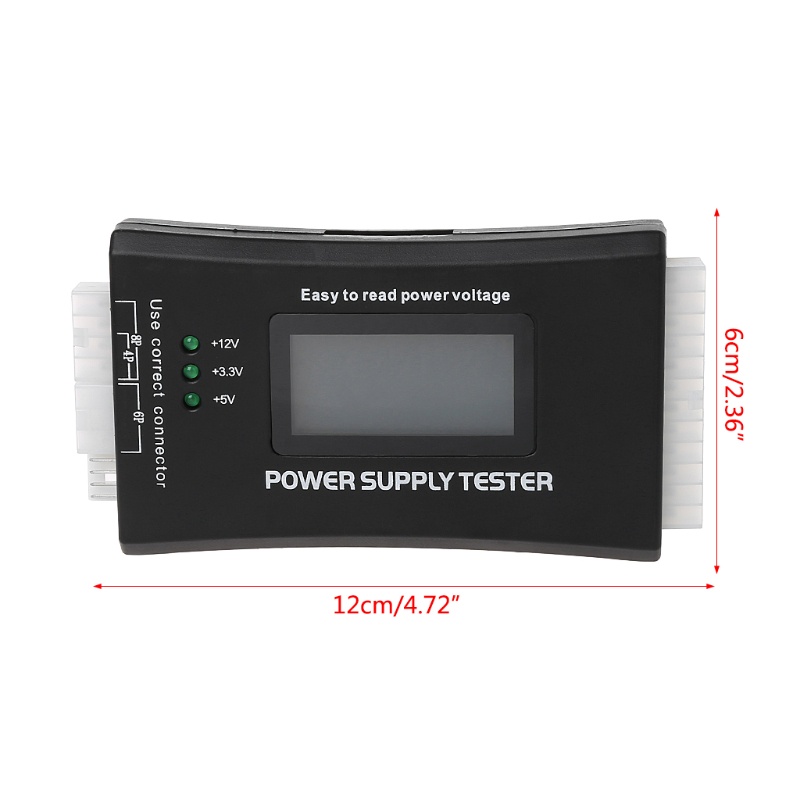 Pri power Supply Tester จอแสดงผล LCD แหล่งจ่ายไฟคอมพิวเตอร์เครื่องทดสอบวินิจฉัย PC-power Supply ATX BTX ITX Compliant สีดํา