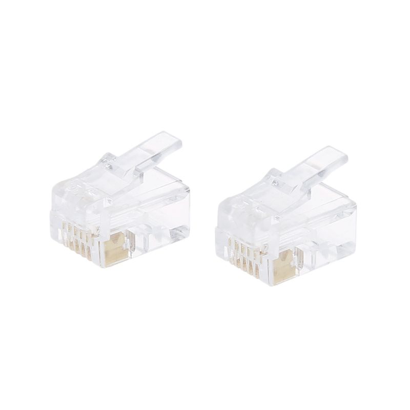 Pri 100 ชิ้น RJ12 6P6C สายโมดูลาร์สําหรับหัวตัวเชื่อมต่อโทรศัพท์ปลั๊กคริสตัล
