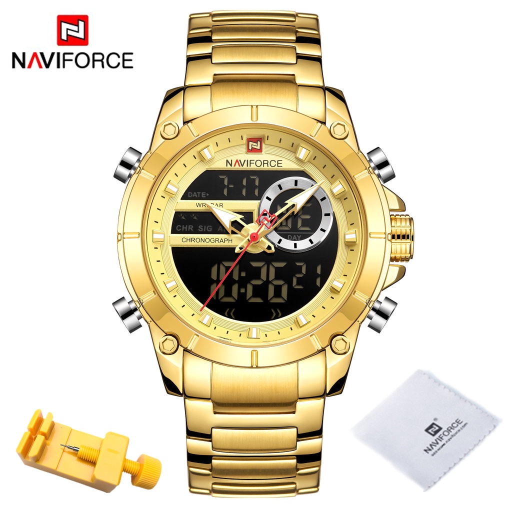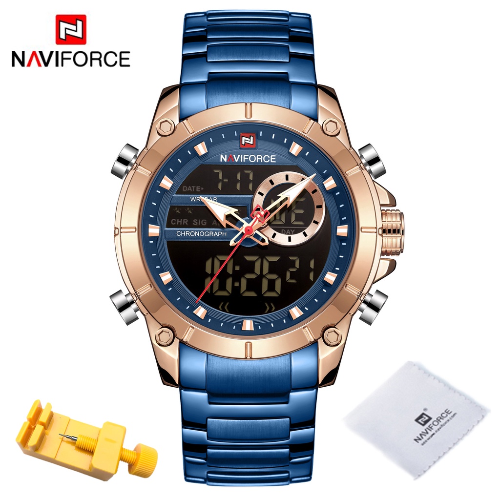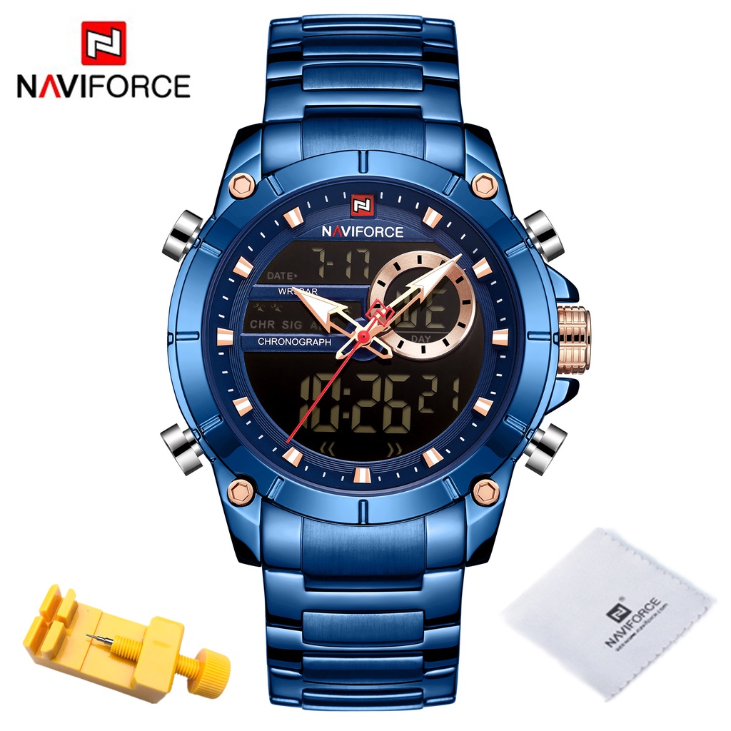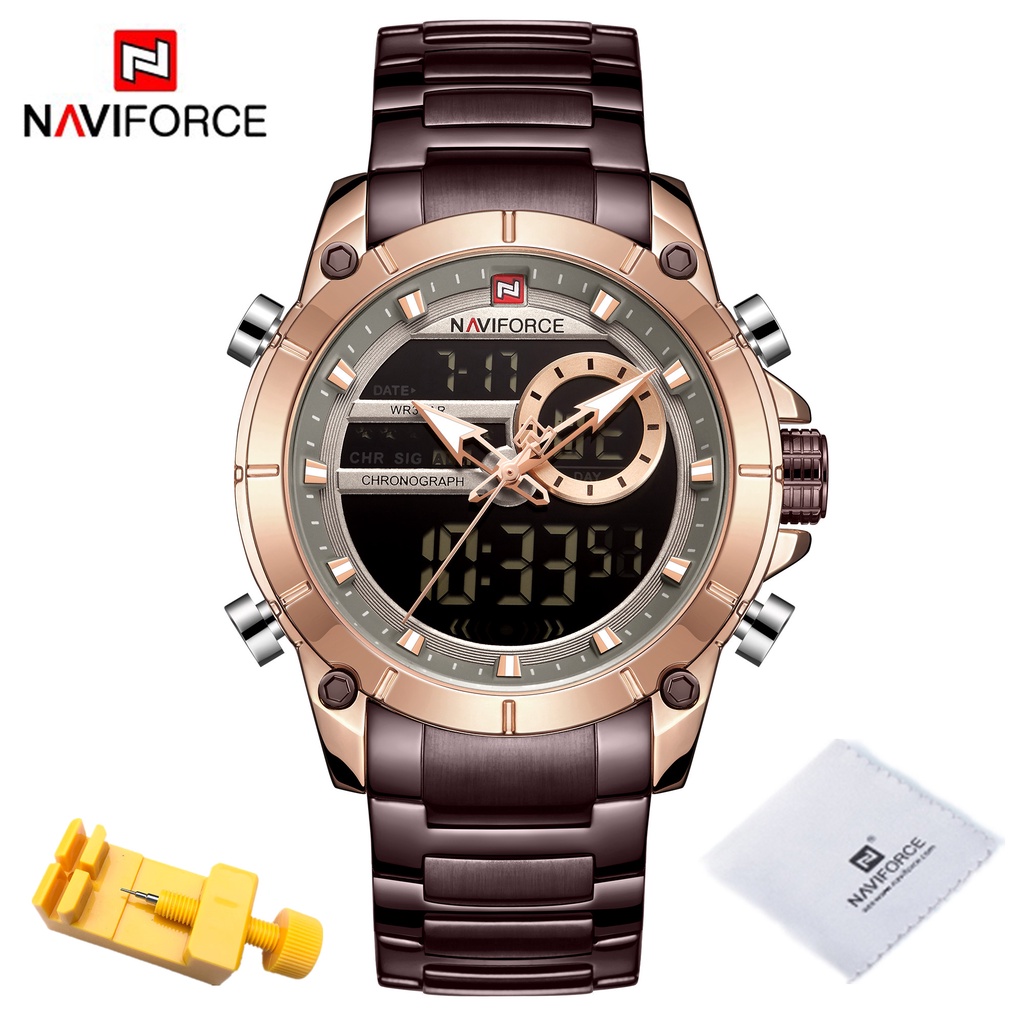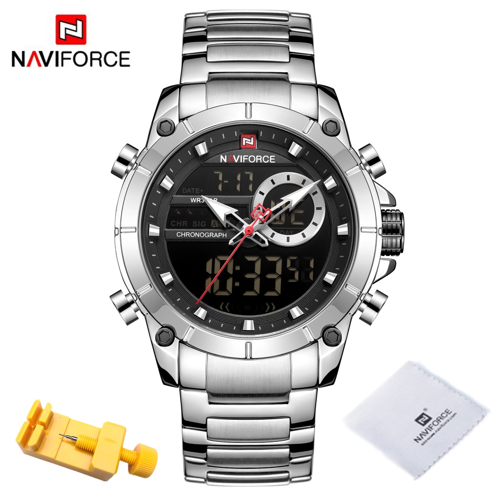 Naviforce นาฬิกาข้อมือควอตซ์แฟชั่น สายแสตนเลส โครโนกราฟ อเนกประสงค์ กันน้ํา สําหรับผู้ชาย 9163