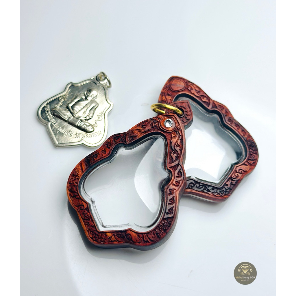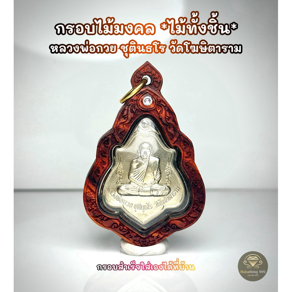 กรอบพระสำเร็จ แบบตลับ หลวงพ่อกวย ชุตินธโร วัดโฆษิตาราม ไม้มงคล เคลือบน้ำมันพยุง สะดวกใส่ได้เองที่บ้าน