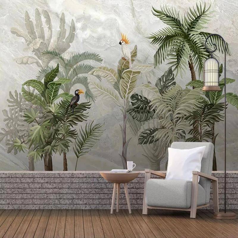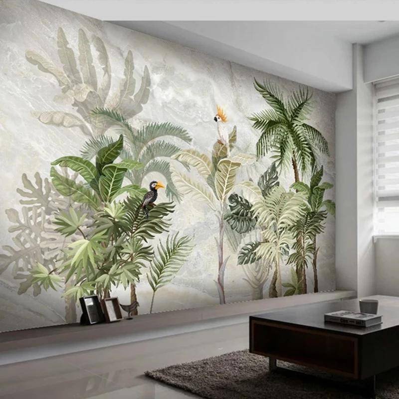 วอลล์เปเปอร์ภาพที่กําหนดเองสําหรับผนัง3 ง รูปแบบหินอ่อนมือวาดพืชใบห้องนั่งเล่นผนังพื้นหลังภาพวาด