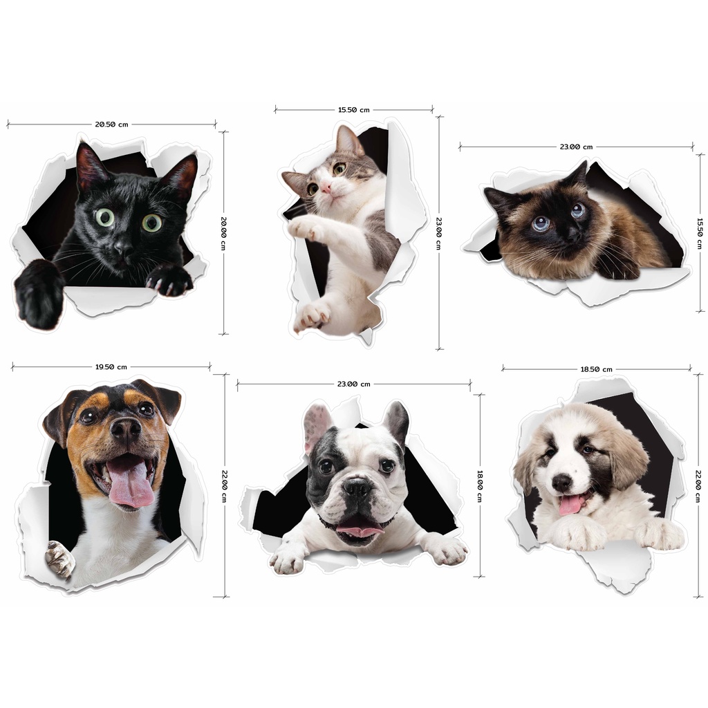 (021)สติ๊กเกอร์ 3D Dog Cat สติ๊กเกอร์ 3 มิติ หมา แมว จ๊ะเอ๋ ตกแต่งรถยนต์ ติดผนัง ติดกระจก กันน้ำ ทนน้ำ ทนแดด