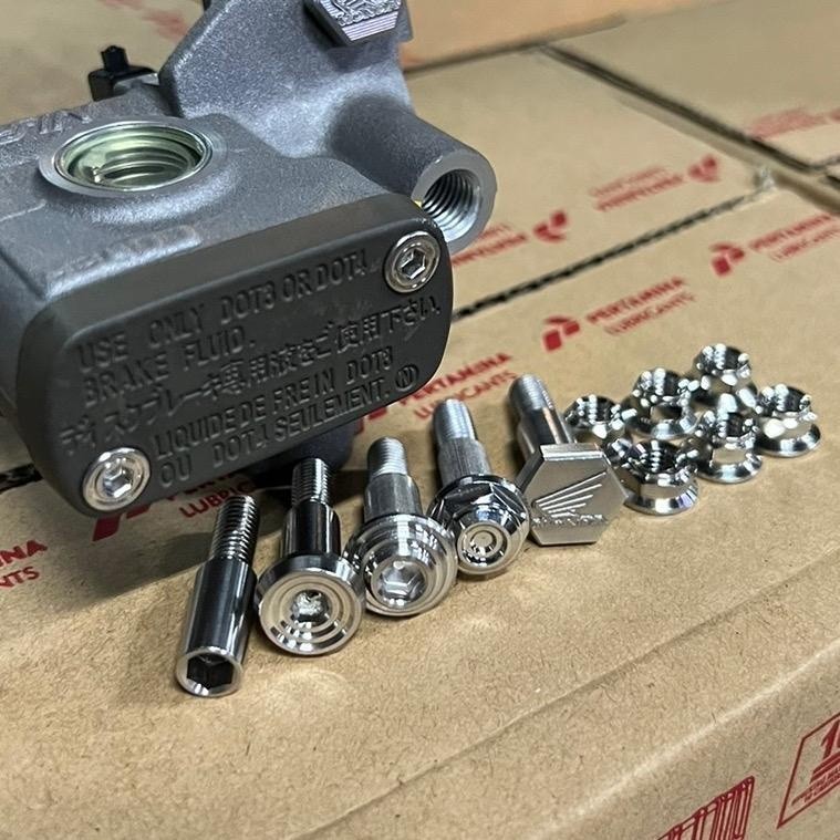 ชุดสุดคุ้ม สลักเบรคปั้มบน+ตัวเมีย+น็อตปั้มบน2ตัว(H) เลส มีหลายลาย TA_TO หลัก